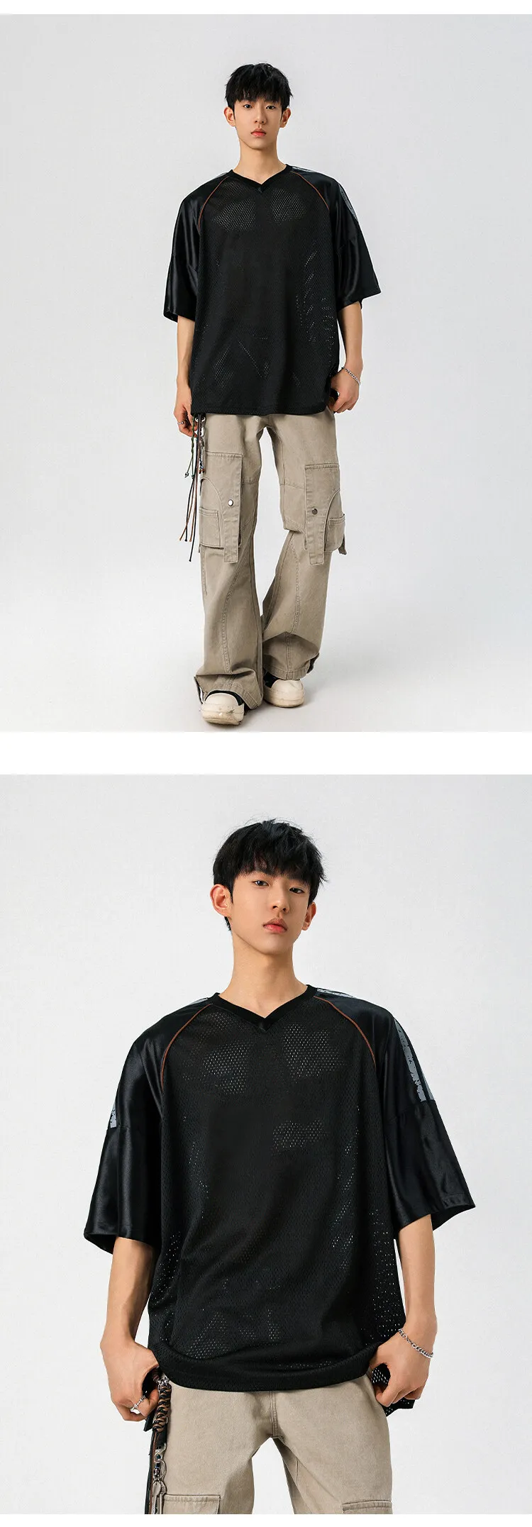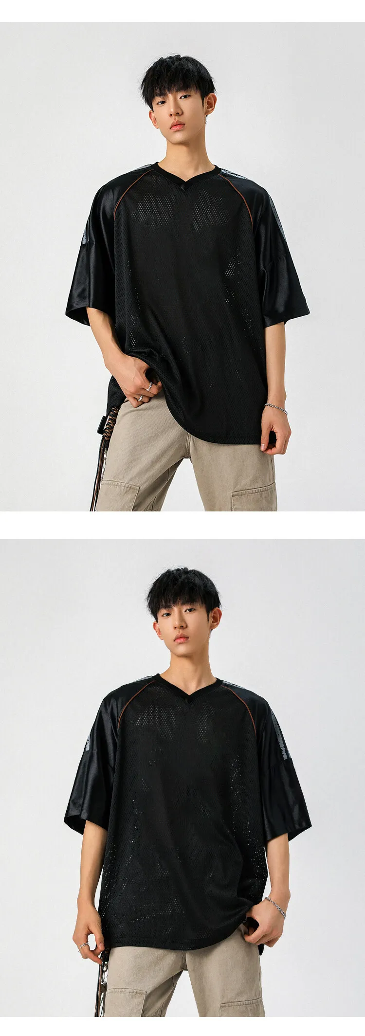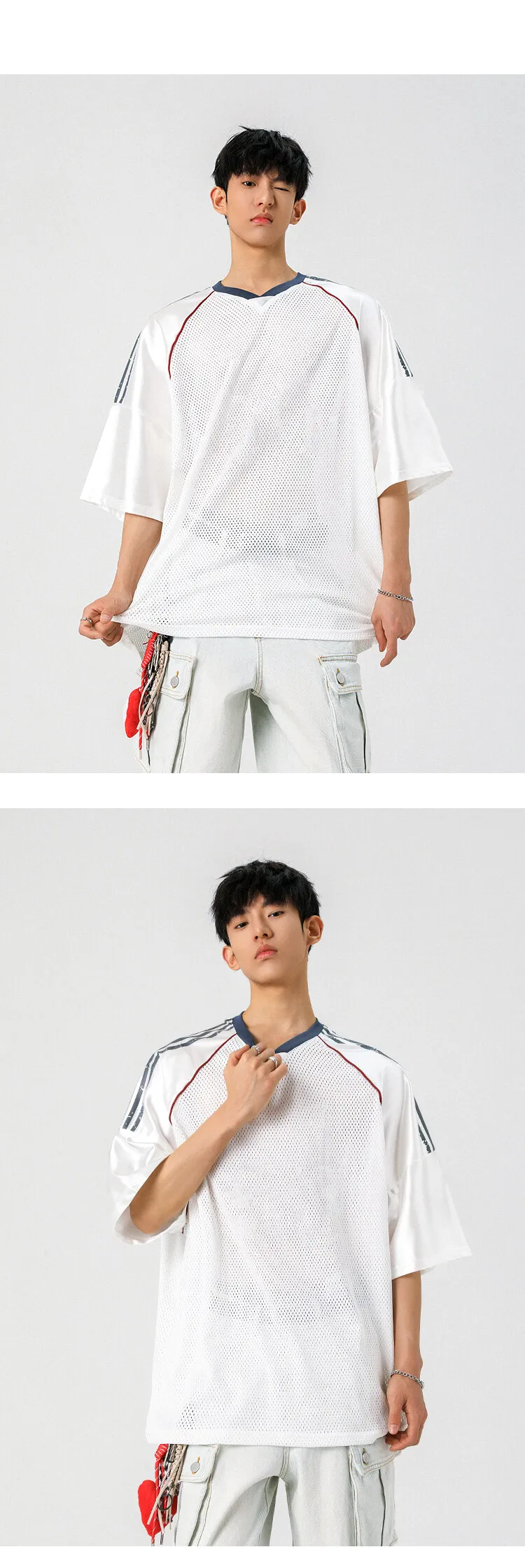 Threebooy Men Sport Tshirt Transparent Mesh V-neck T Shirt Short Sleeve Men Clothing Summer Fashion Streetwear Male Loose Tee Tops