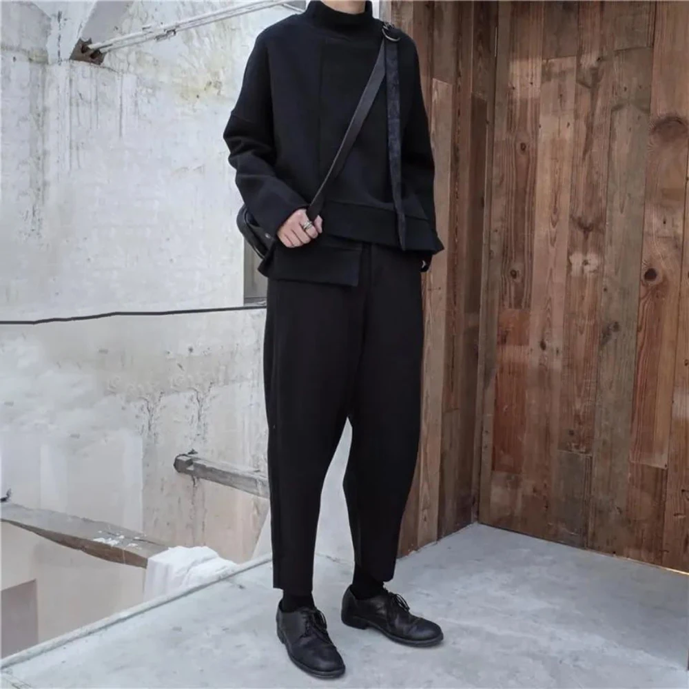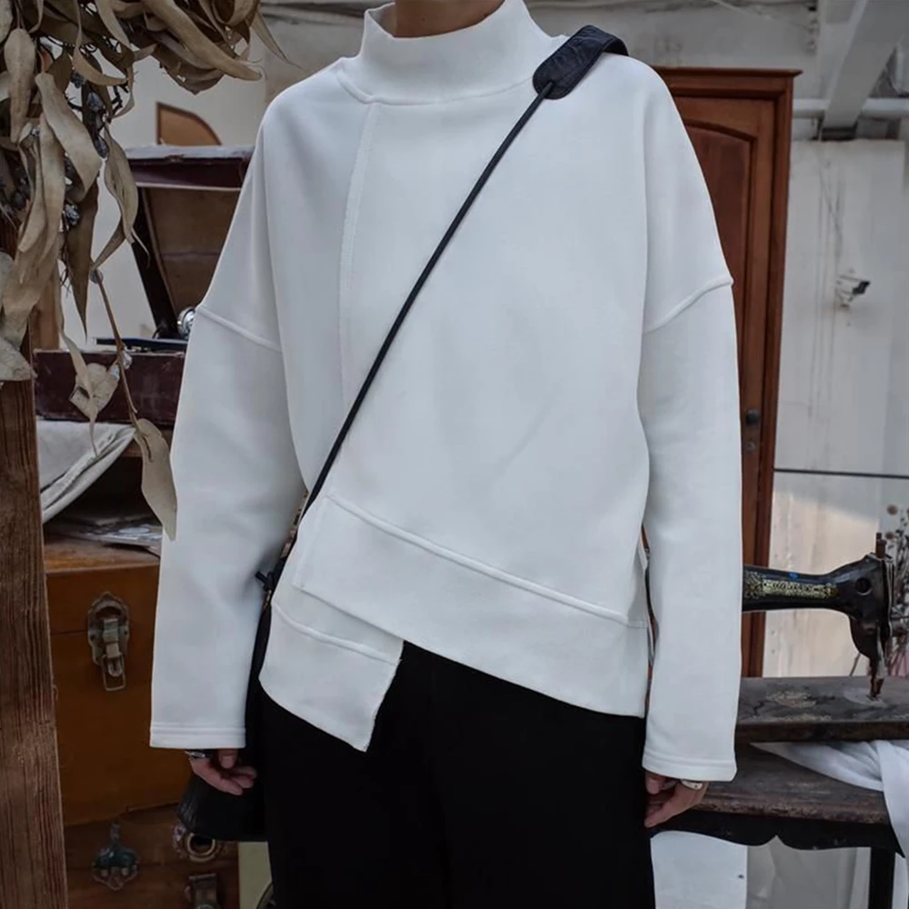 Threebooy Mens Autumn Winter Irregular Solid Color Sweatshirt 2024 New Essential Fashion High Collar Casual Simple Splicing Sweatshirt