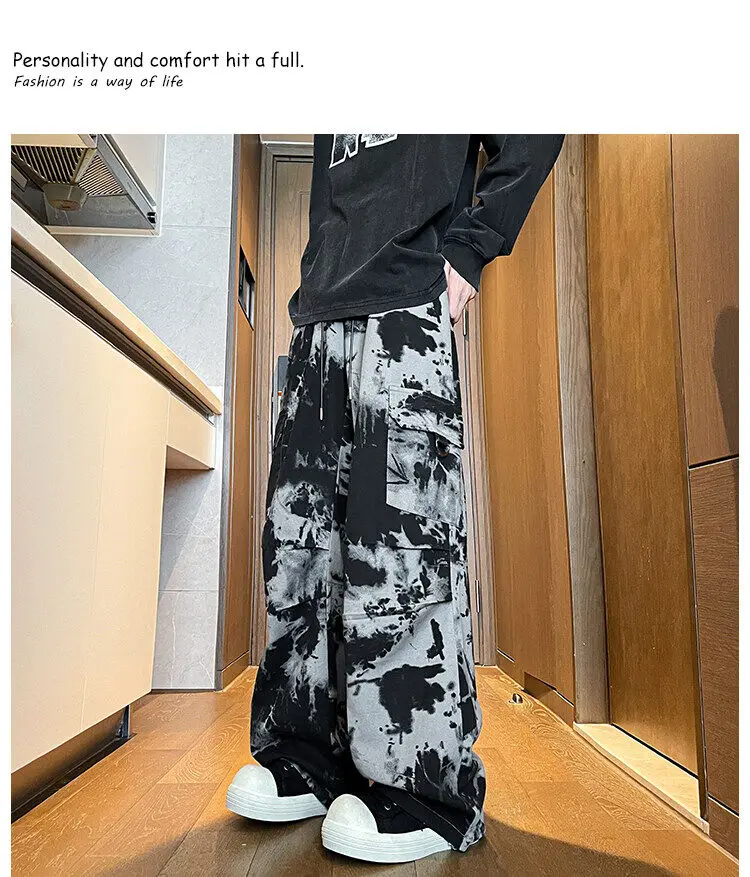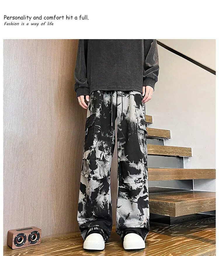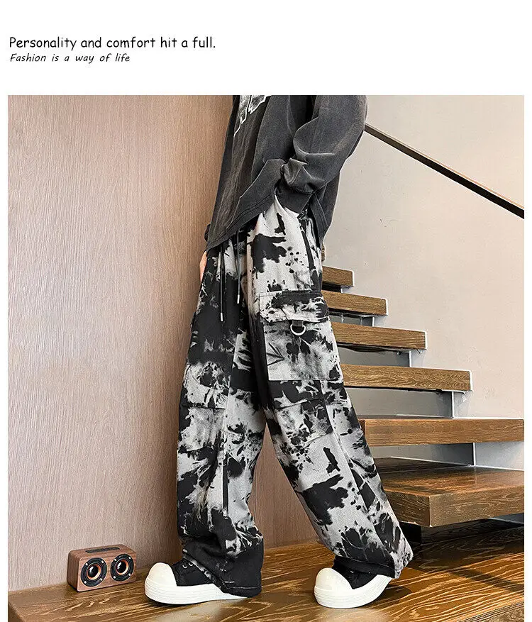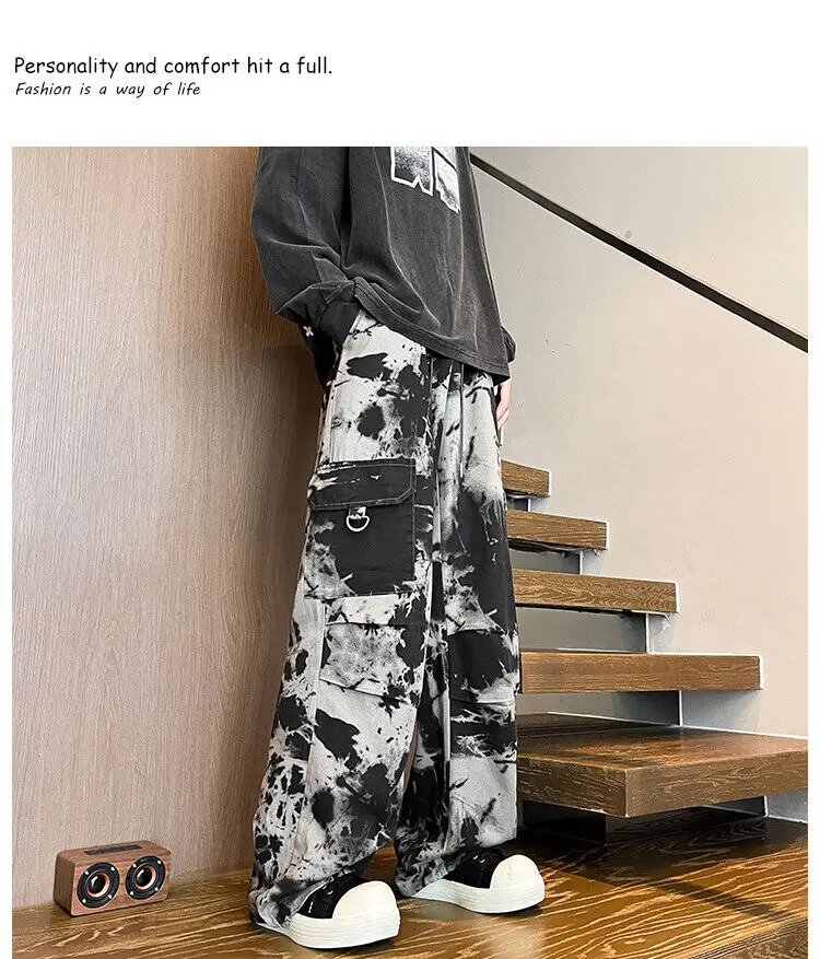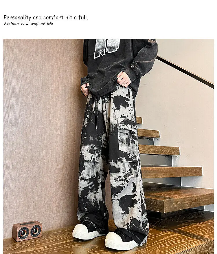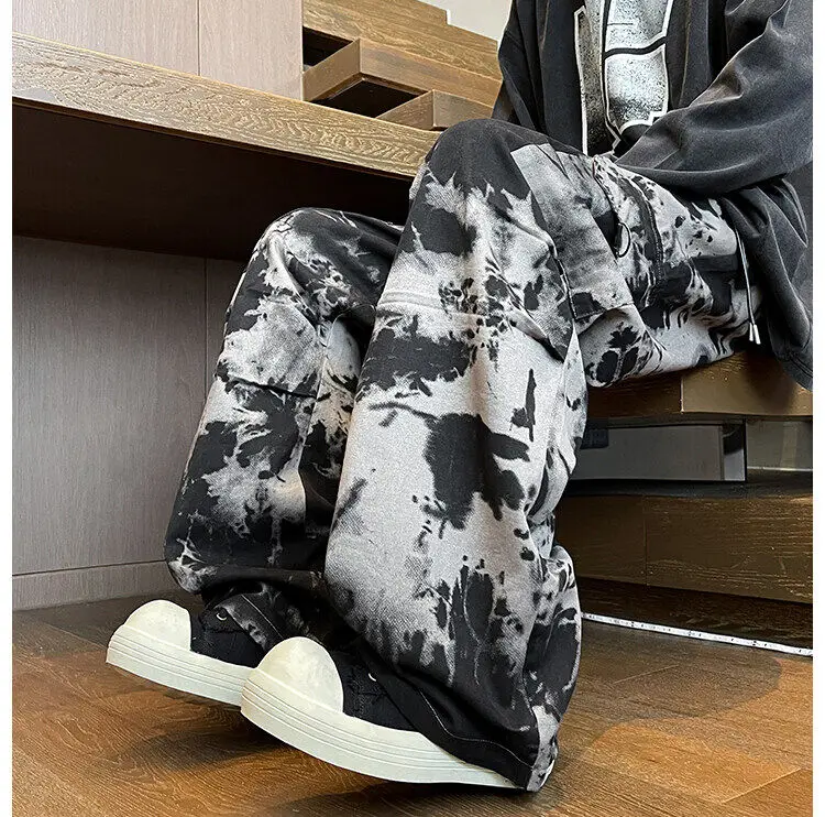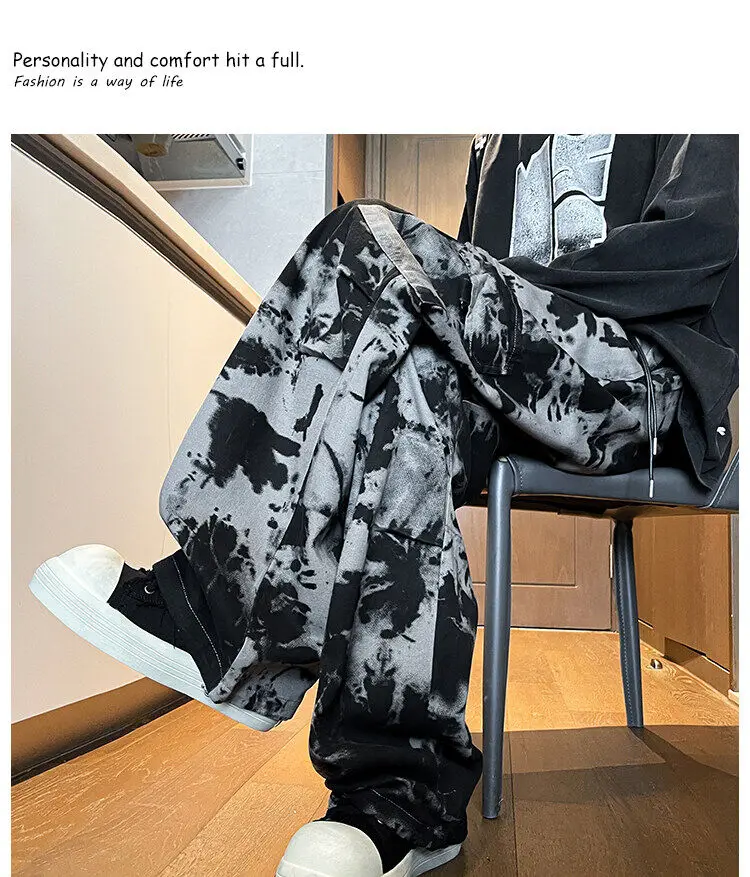 Threebooy Men's Baggy Straight Leg Wide Leg Jeans Male Fashion Wash painting Casual Denim Pants Youth Popular Brand Streetwear Trousers