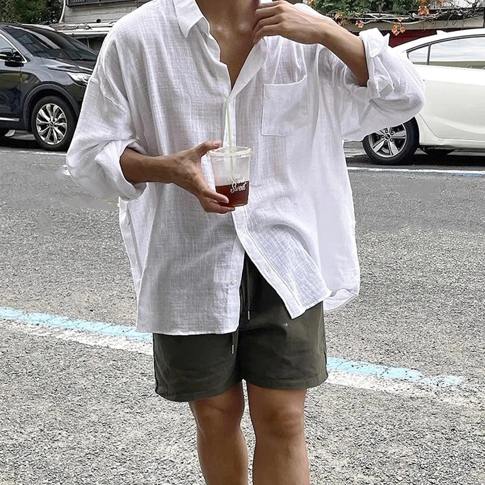 Threebooy Mens Casual Cotton Linen See-Through Thin Long-Sleeve Shirts Genderless 2024 New Youth Simple Solid Color Comfort Shirts Unisex