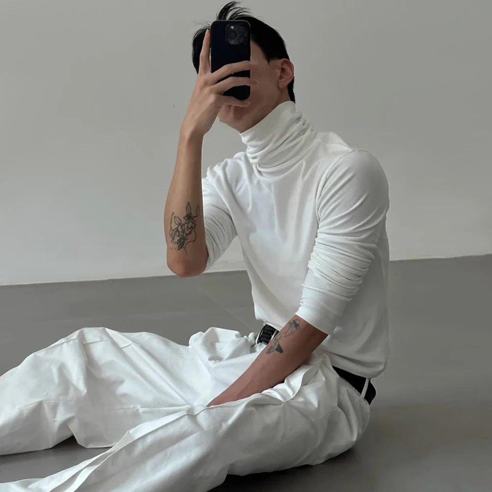 Threebooy Mens Casual Slim Shirt 2024 Spring New Genderless Fashion Shaping Solid Color High Collar Harajuku Bottoming T-Shirt Unisex