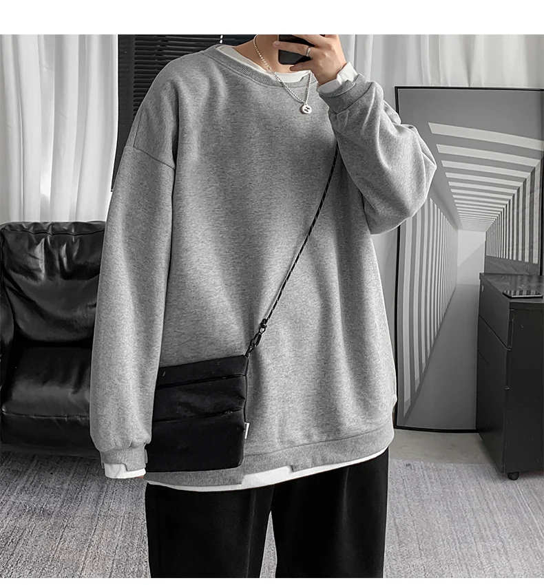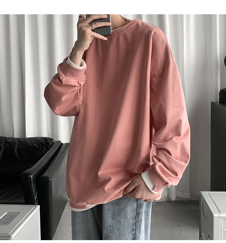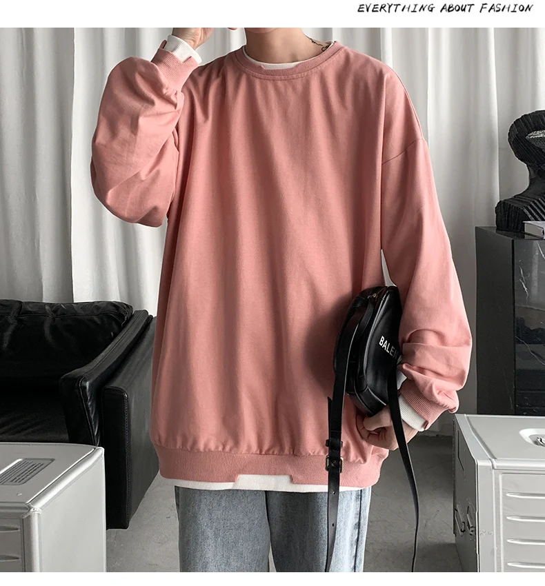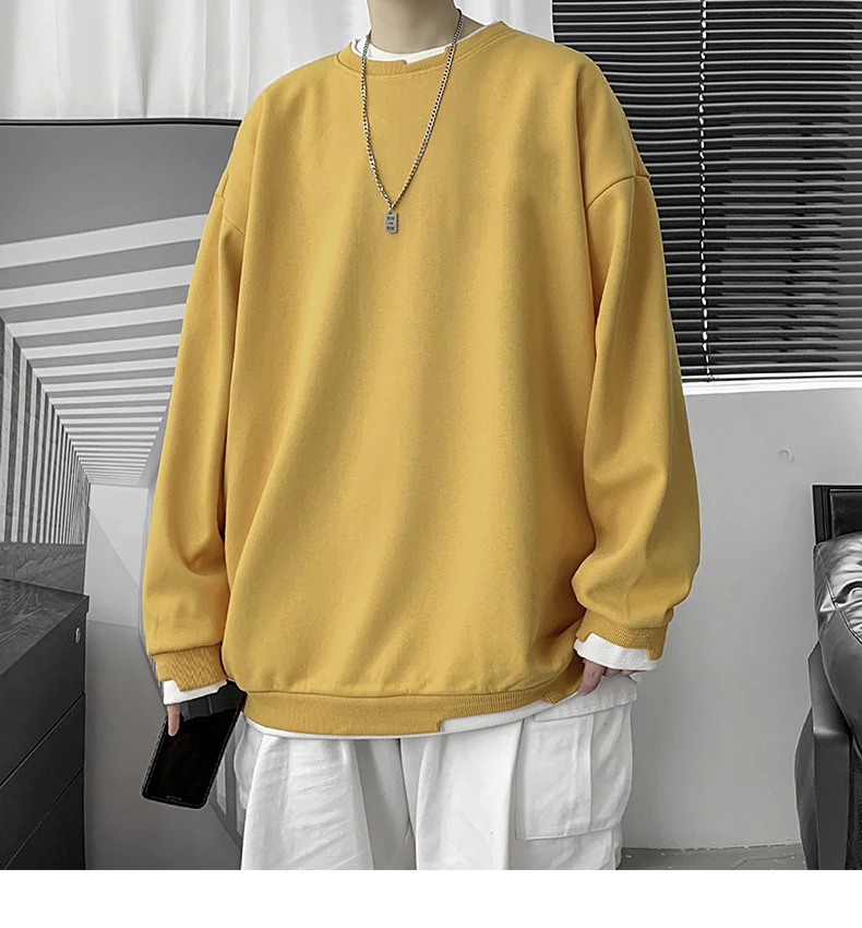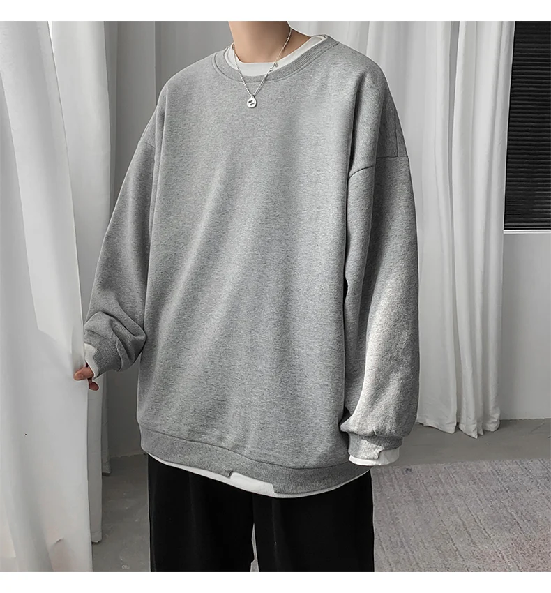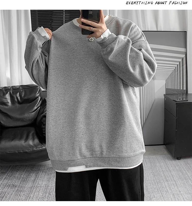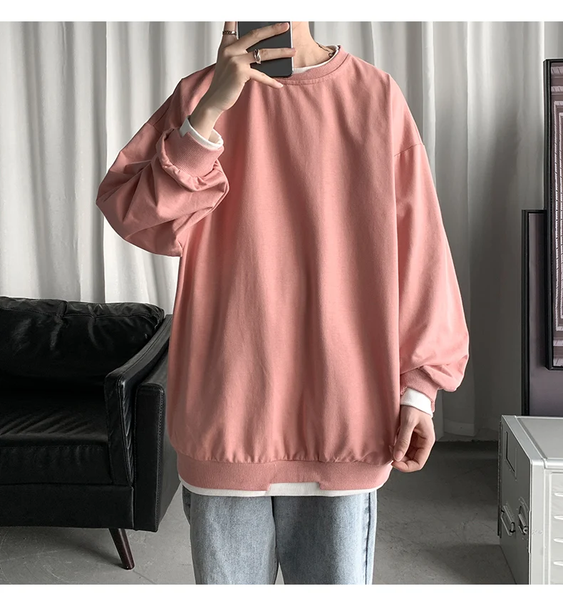 Threebooy Mens Casual Sweatshirts Hoodie Men Fake Two Pieces Oversized Japanese Streetwear Sweatshirts Man Harajuku O-Neck Hoodie
