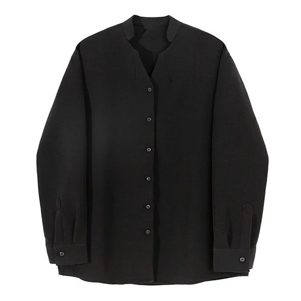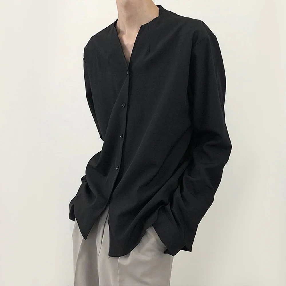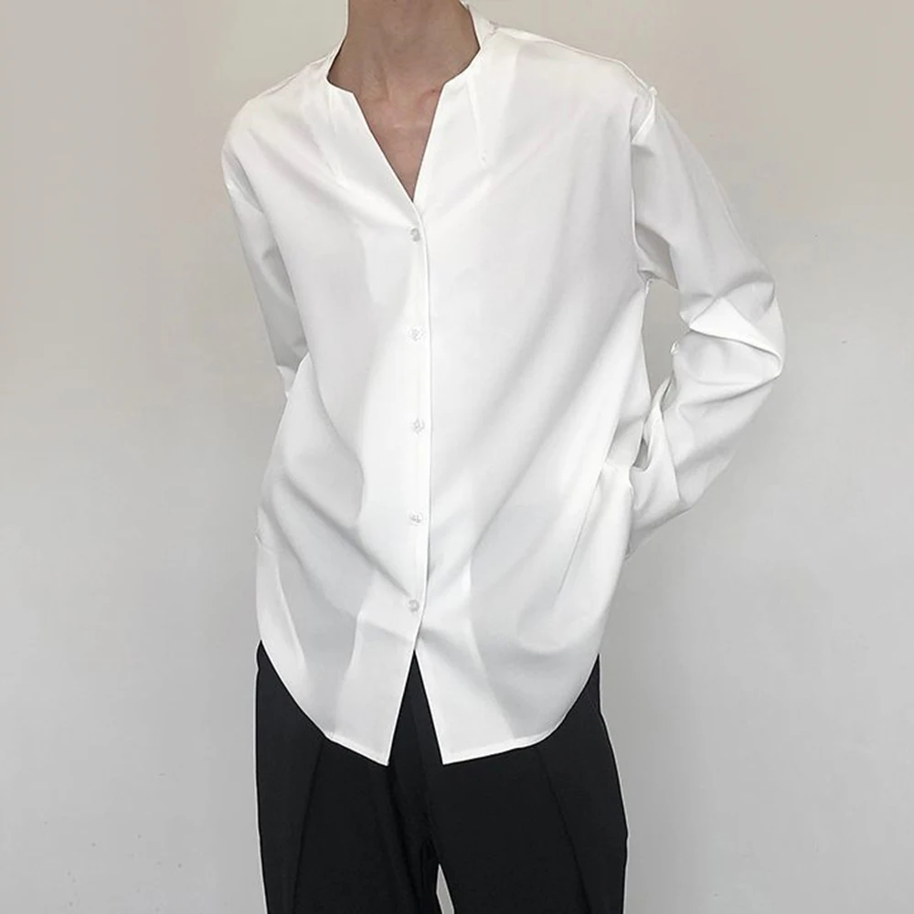 Threebooy Mens Casual V-Neck Long-Sleeved Shirts Genderless 2024 Spring Summer New Fashion Solid Color Versatile Youth Trend Tops Unisex