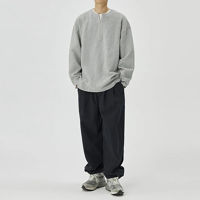 Threebooy Men's Clothing Leisure Luxury Zipper Sweatshirt Long Sleeve Solid Color O Neck Korean Retro Loose Fashion Pullover T-shirt M-3XL