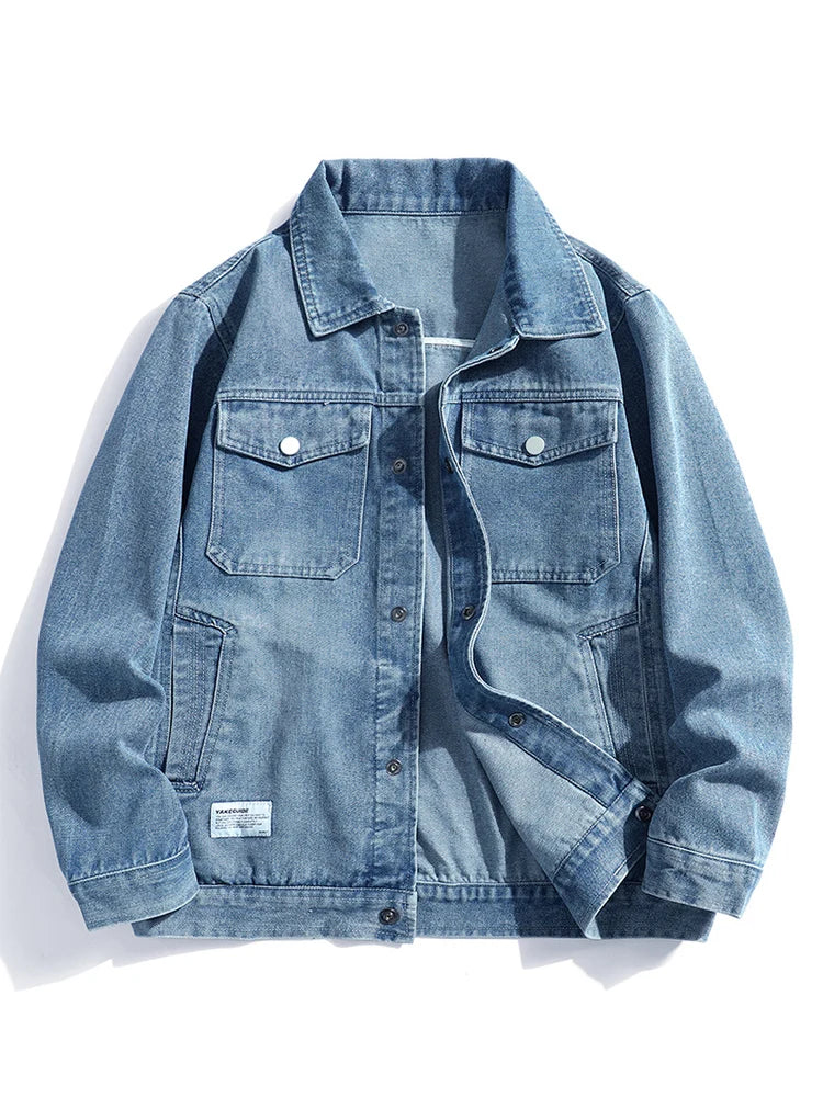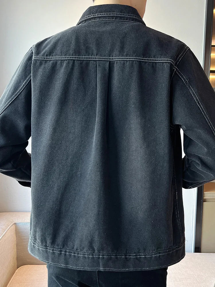 Threebooy Men's Denim Jackets with 6 Pockets Korean Fashion Black Blue Slim Fit Casual Jean Cargo Coat 2025 Autumn New for Dailywear