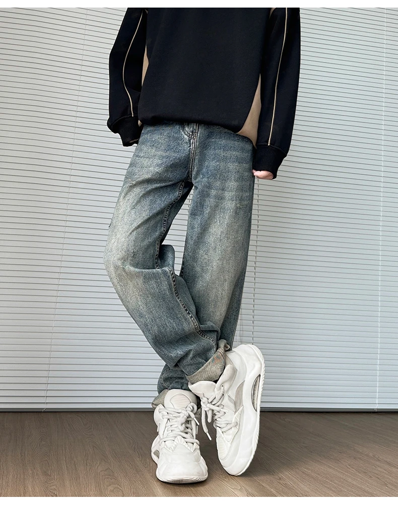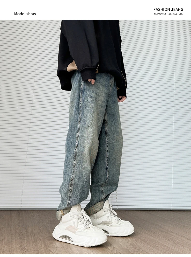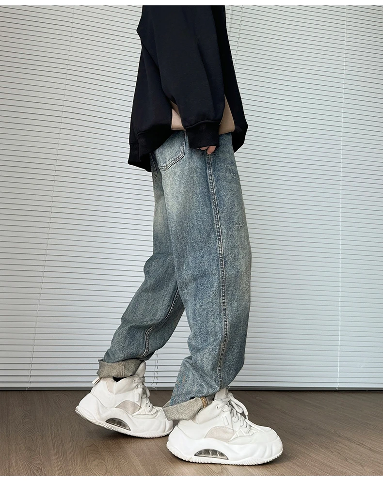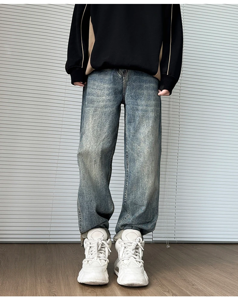 Threebooy Men's Fashion Korean Jeans Baggy Straight Vintage Denim Pants High Street Hip Hop High Quality Trousers Streetwear Male Clothes