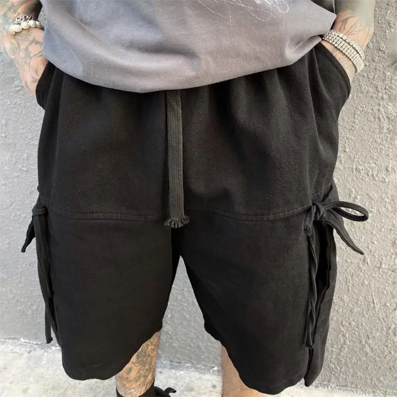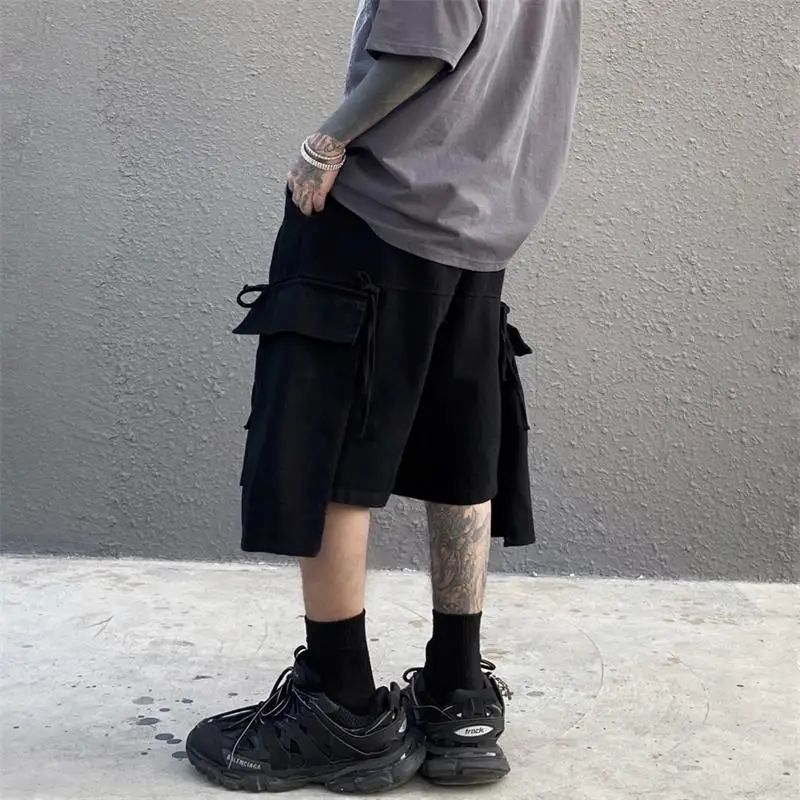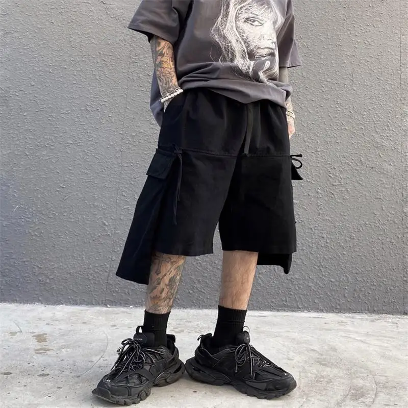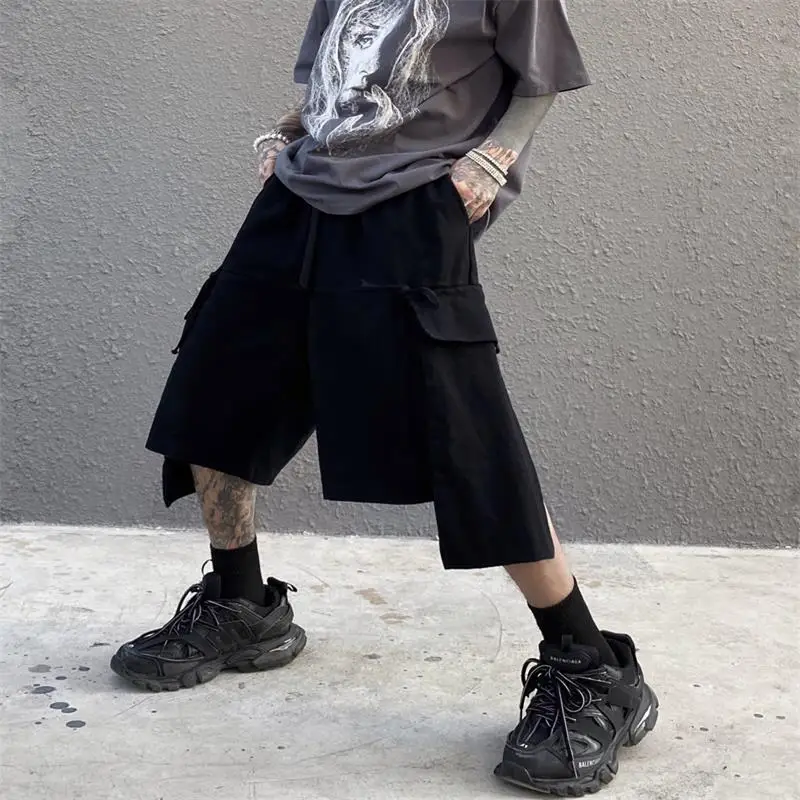 Threebooy Men's fashion trend irregular casual shorts personality hip-hop five-cent pants solid color plus size