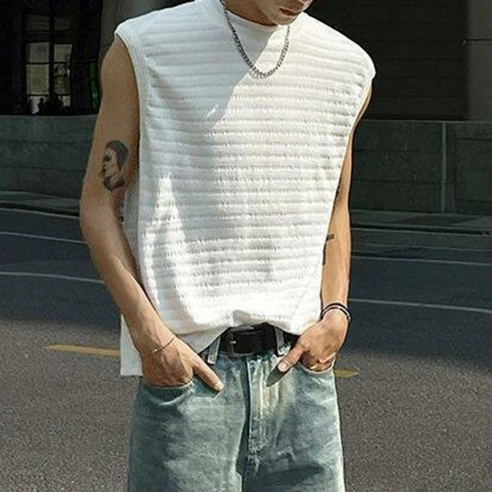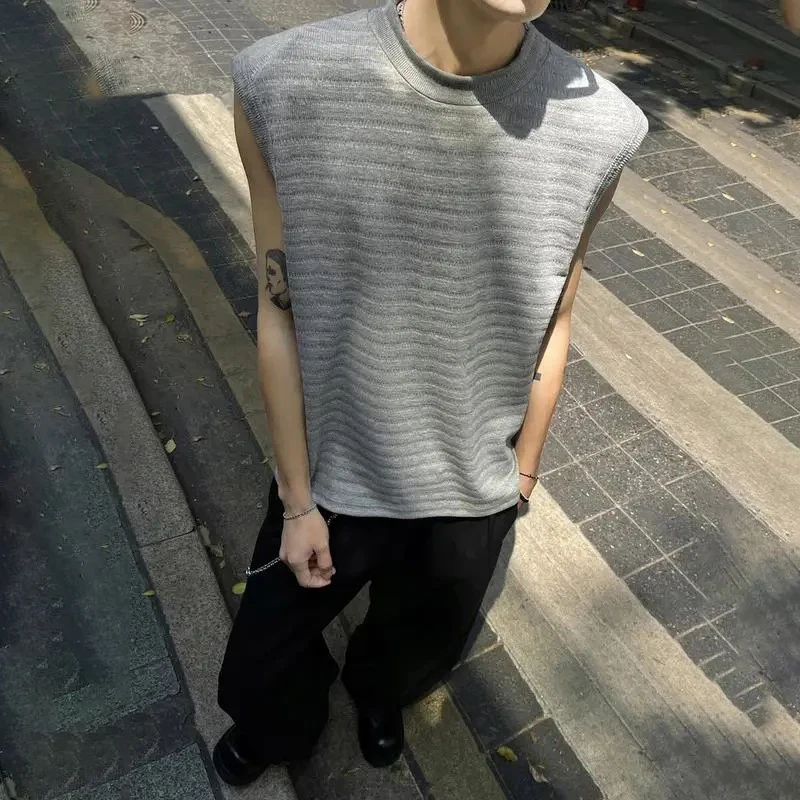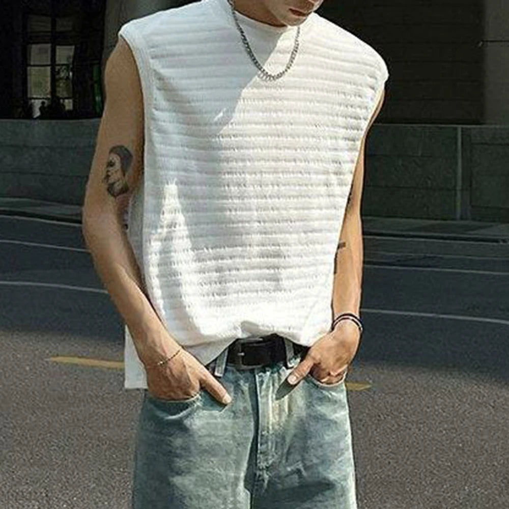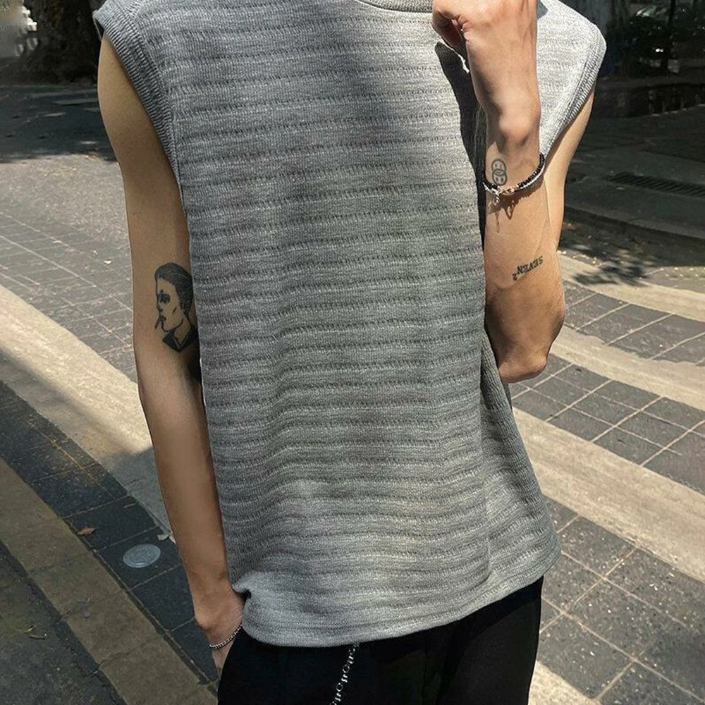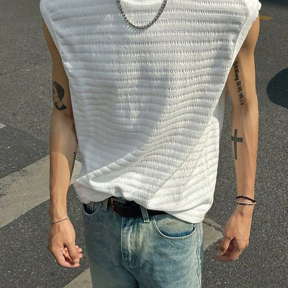 Threebooy Men's Fashion Trend Jacquard Design Sleeveless T-Shirt Summer American High Street Handsome Simple Y2k Waistcoat Vest Men