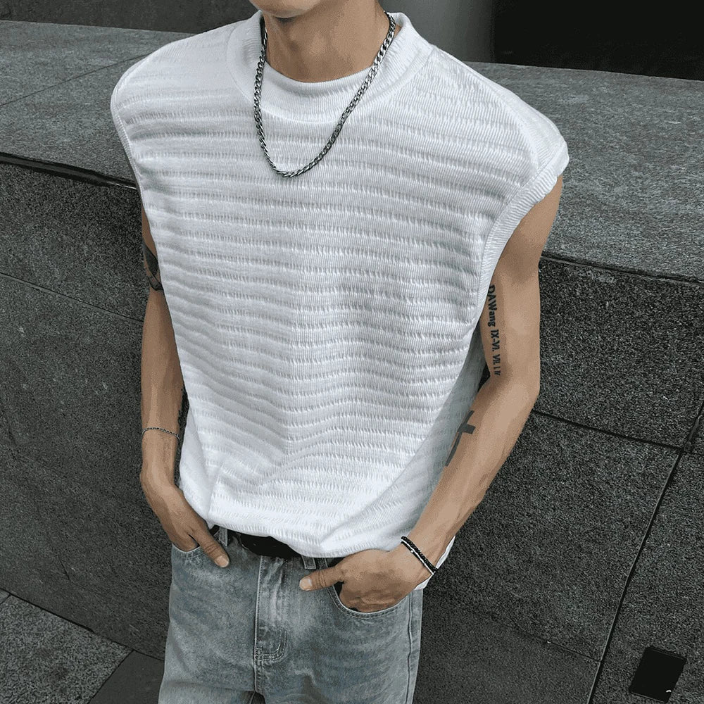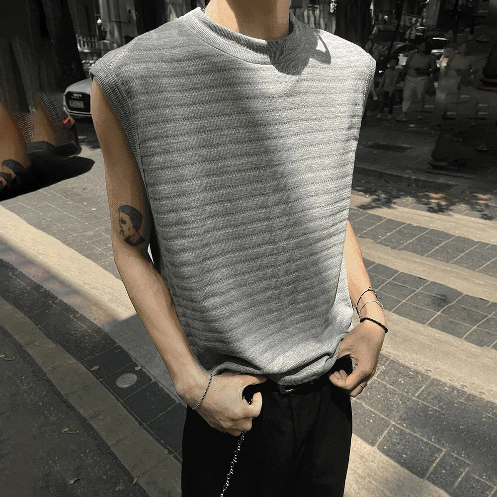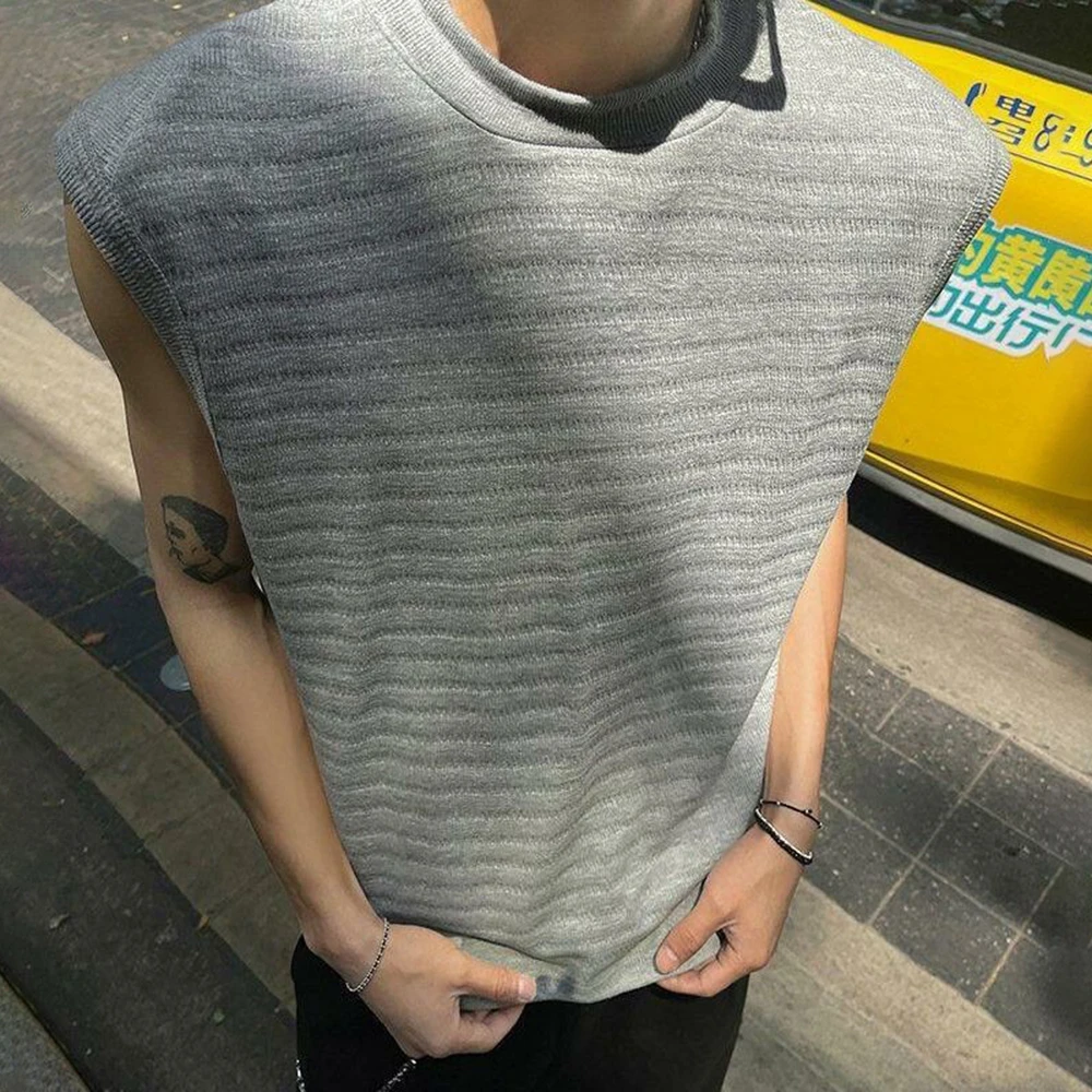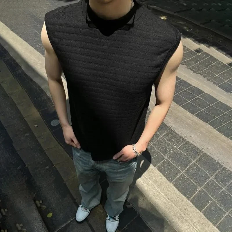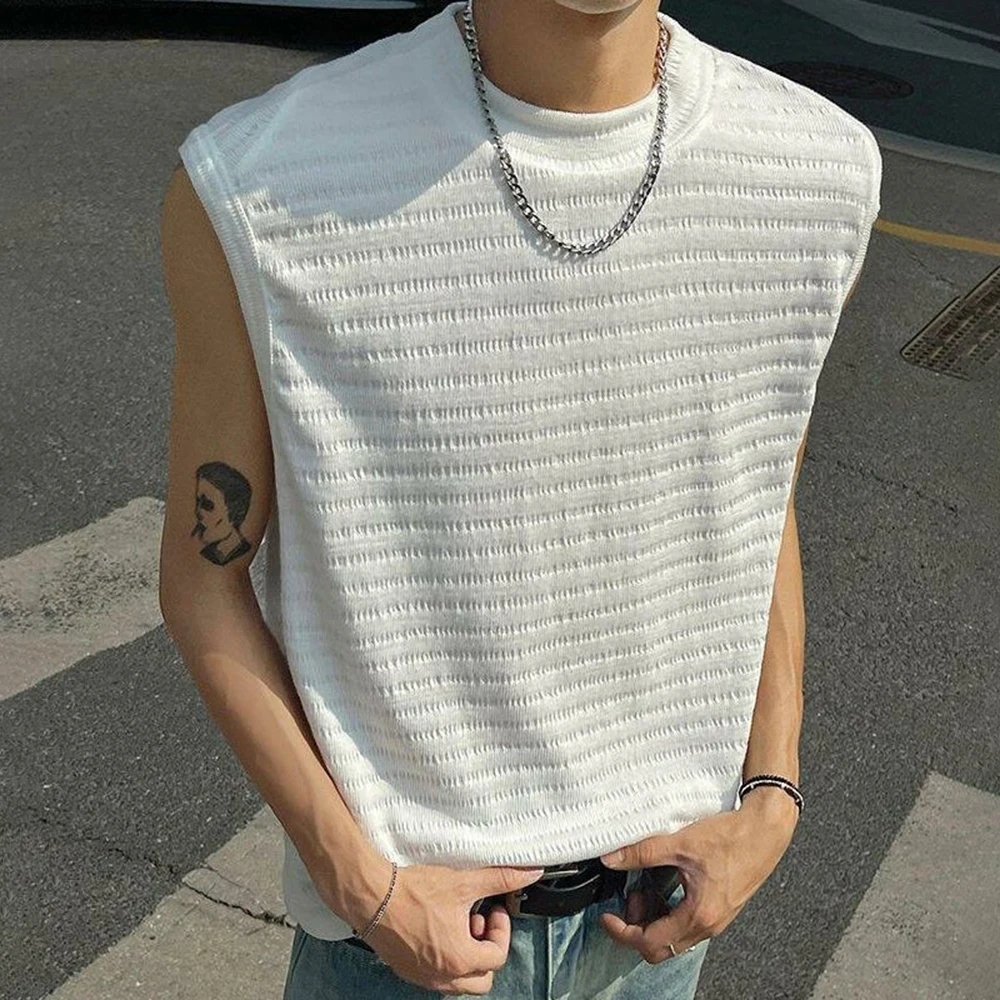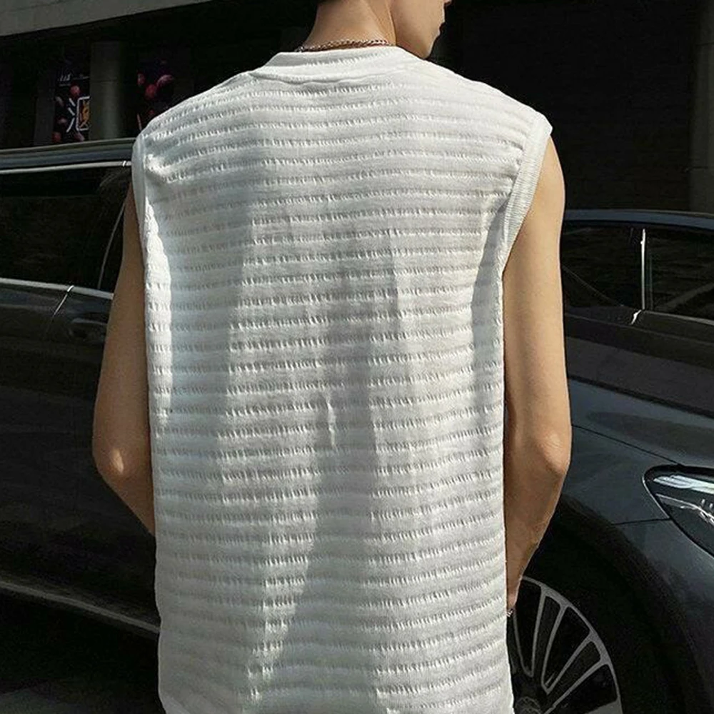 Threebooy Men's Fashion Trend Jacquard Design Sleeveless T-Shirt Summer American High Street Handsome Simple Y2k Waistcoat Vest Men