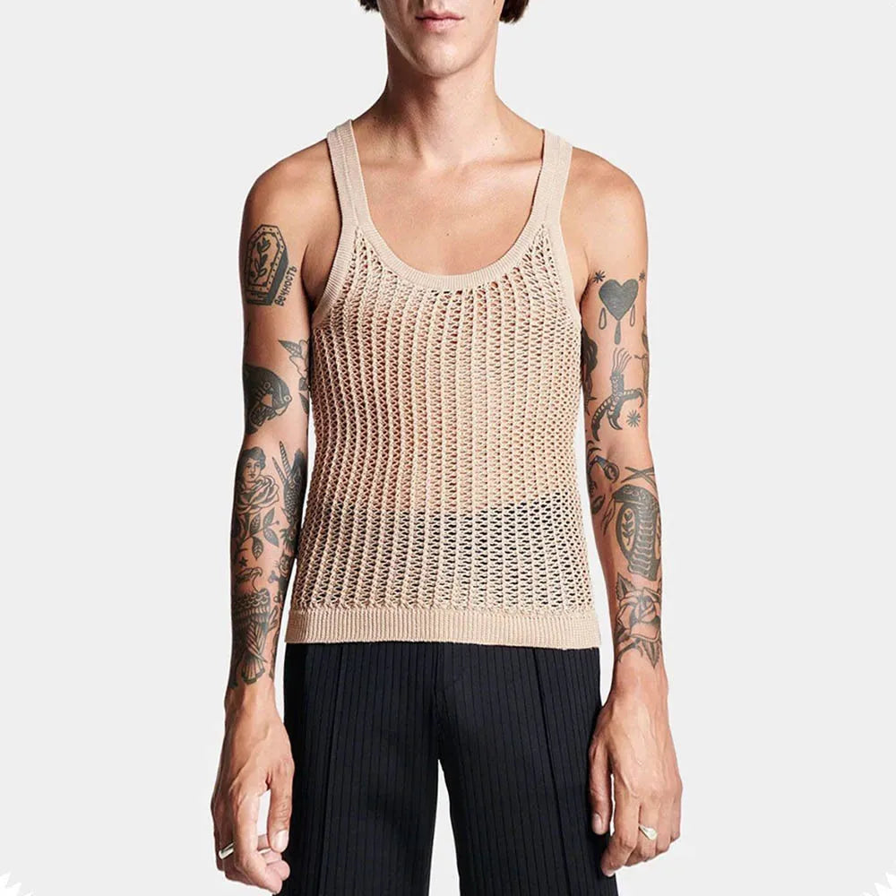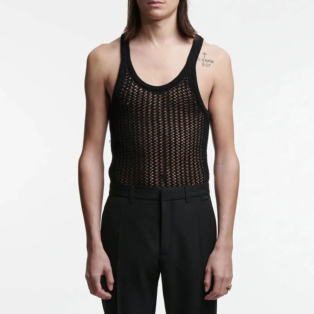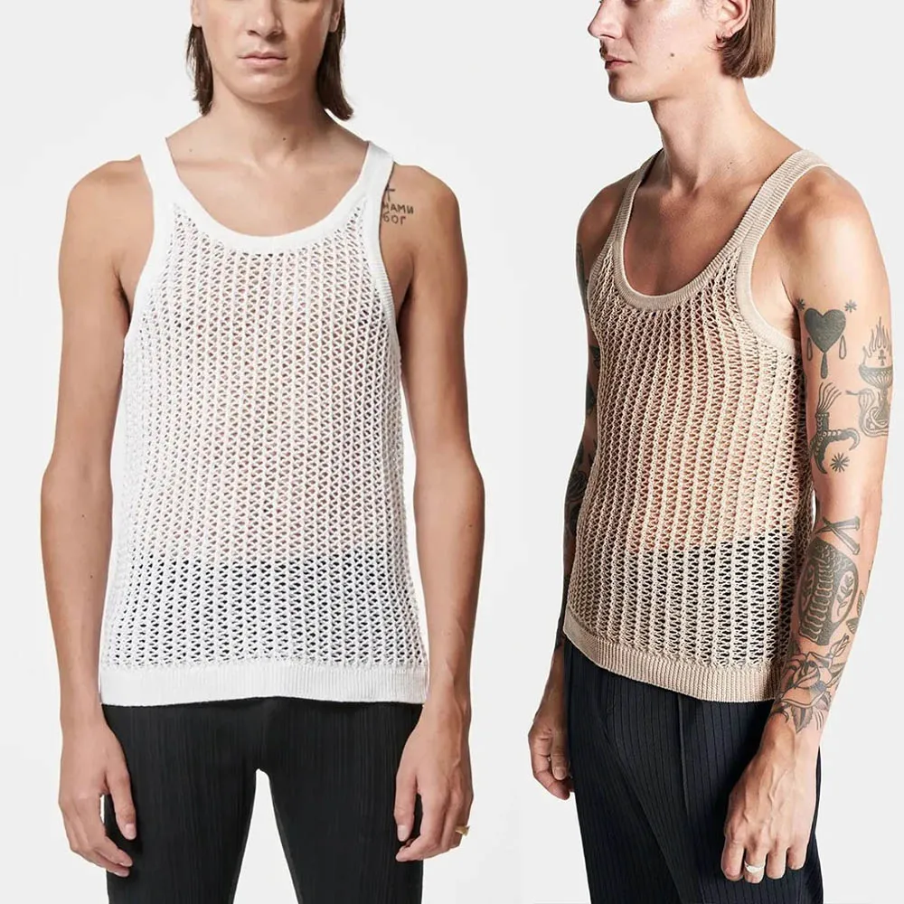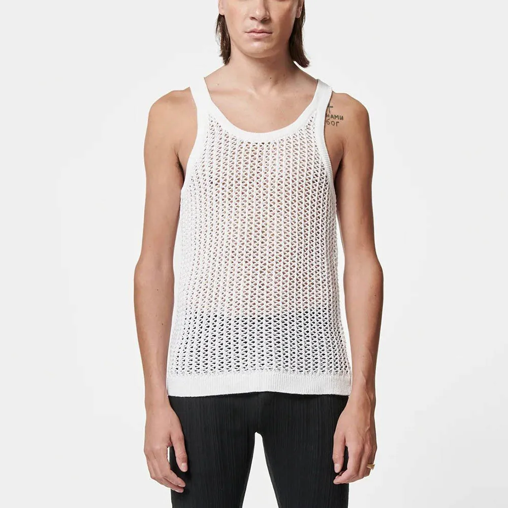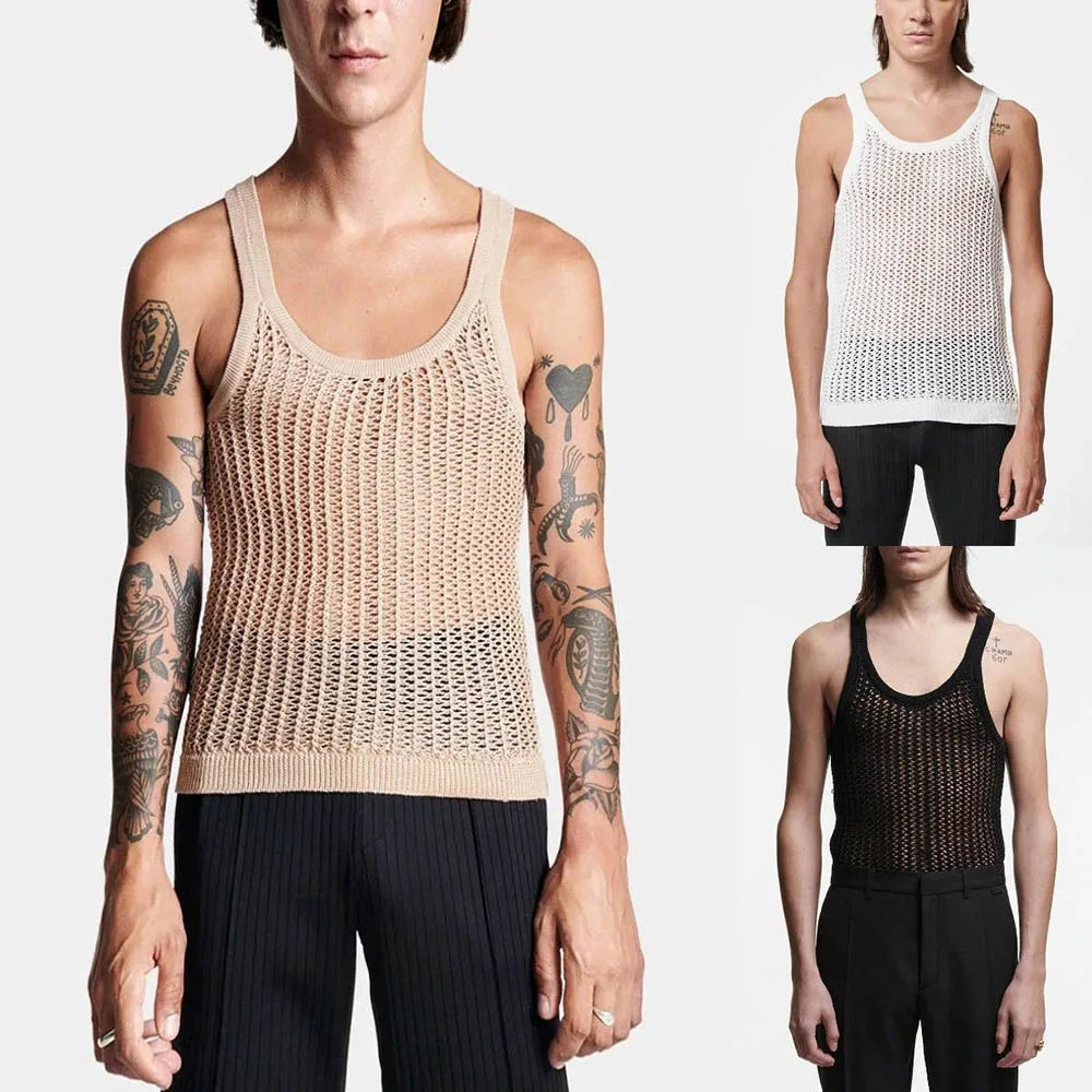 Threebooy Men's Hollow Knitted Sleeveless Vest American Retro Fashion Trend Street Loose Casual Breathable Niche Summer New Men's Tops