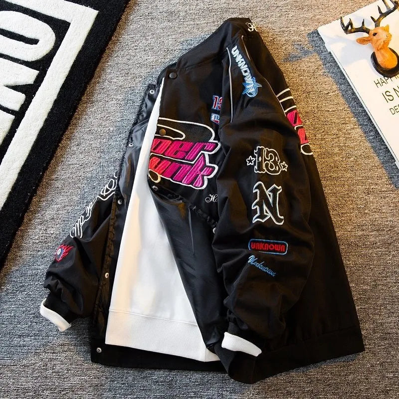 Threebooy Men's Jacket High Street Vintage Retro Locomotive Baseball Uniform Spring Autumn Loose Single-breasted Embroidered Jackets