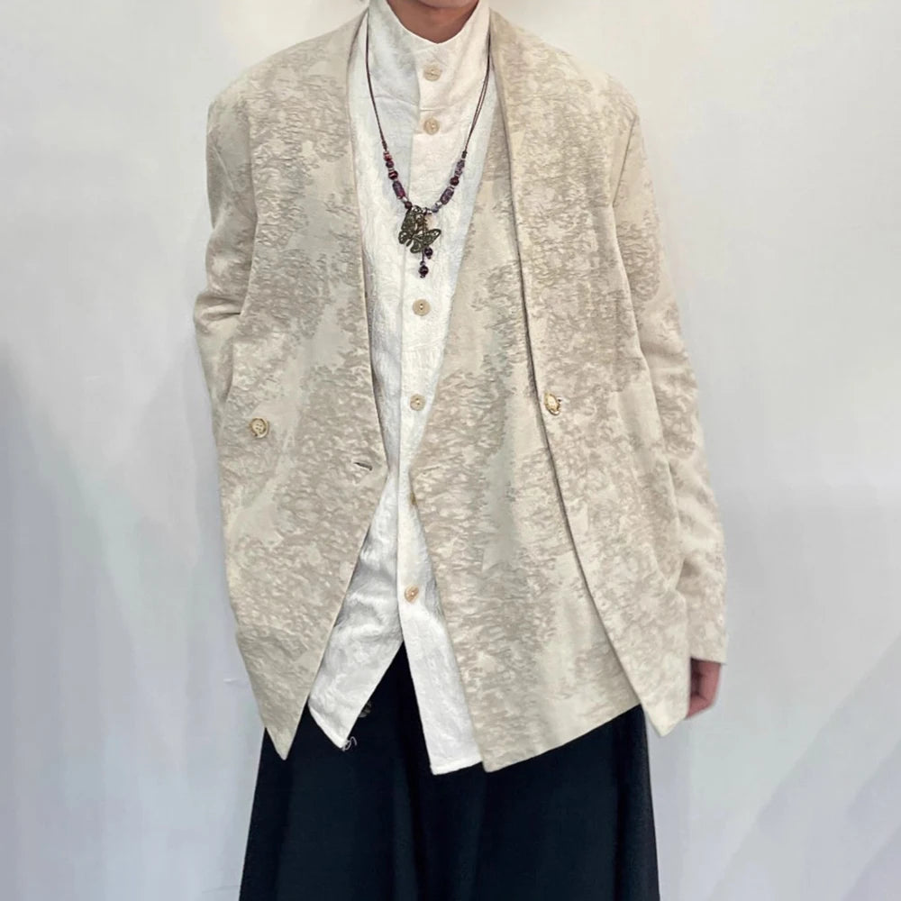 Threebooy Mens Jacket Jacquard Belt Elegant Apricot Suit Genderless Chinese Style Retro Court Style Campus Casual Long-Sleeve Top Unisex