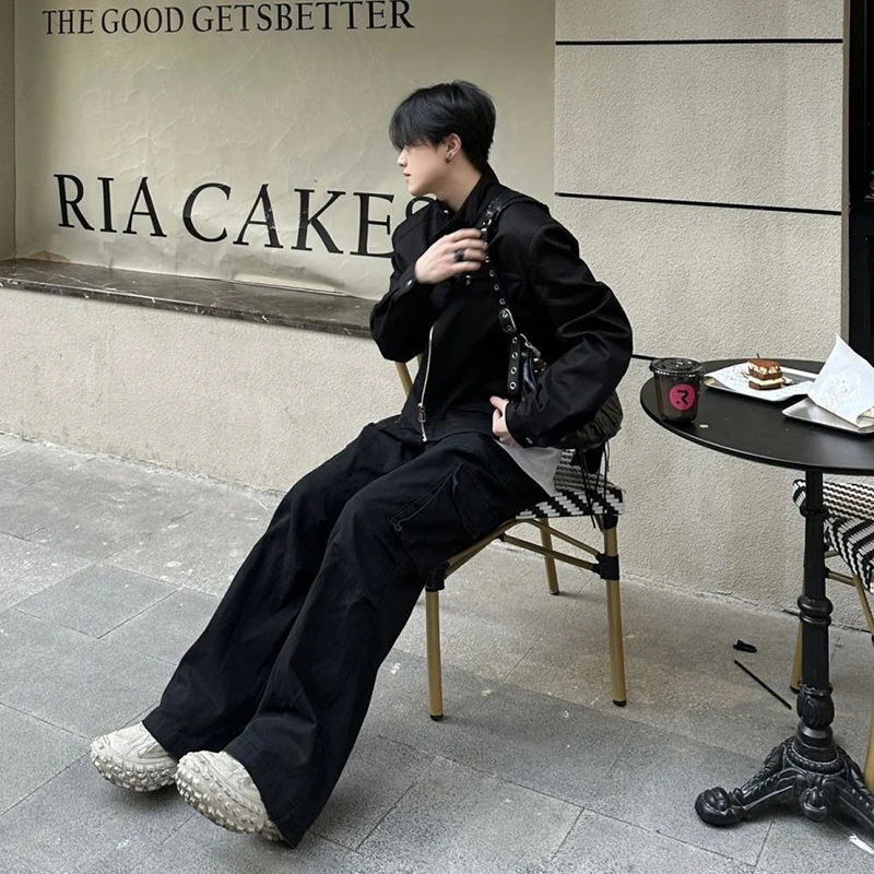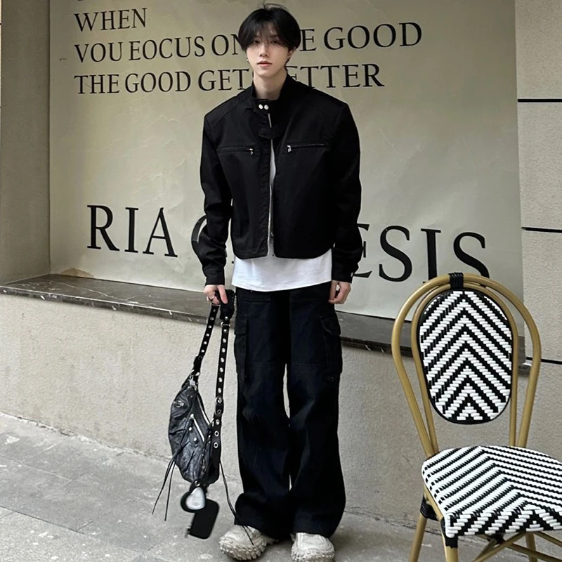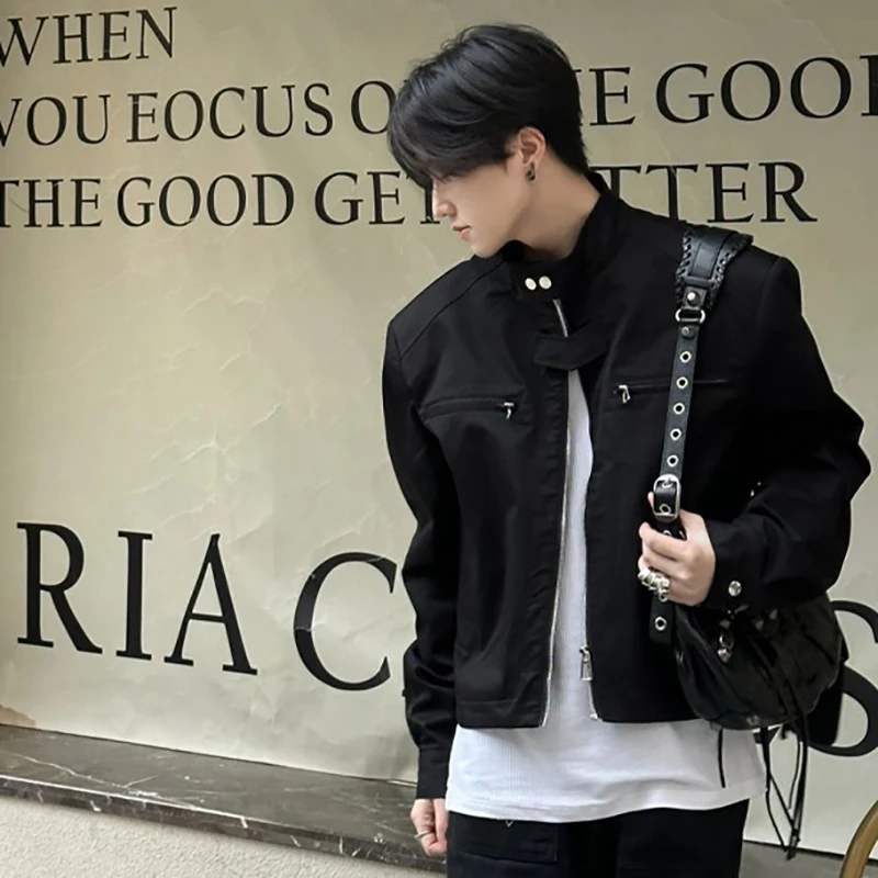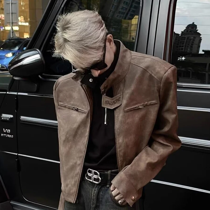 Threebooy Men's jacket Retro Motorcycle Jacket Fashion Korean Style Spring Autumn Vintage Brown Short Jacket High Street Outerwear Coat