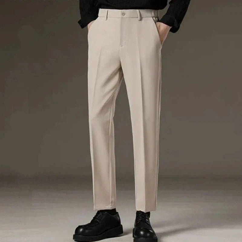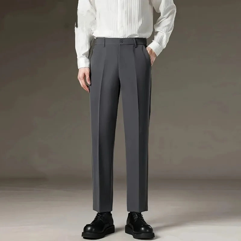 Threebooy Men's Nine-point Trousers Autumn Winter Plus Velvet Drape Slim Feet Business Anti-wrinkle No Ironing Casual Suit Trousers