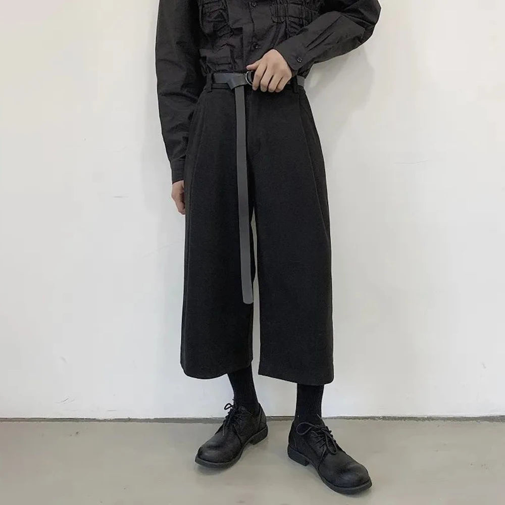 Threebooy Mens Pants Y2k Dark Gothic Style Belt Casual Pants Autumn Streetwear Fashion Straight Wide Leg Cropped Pants Men'S Clothing