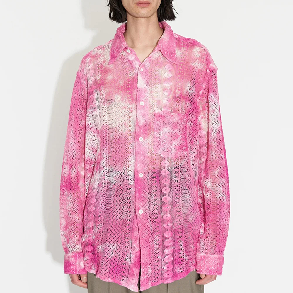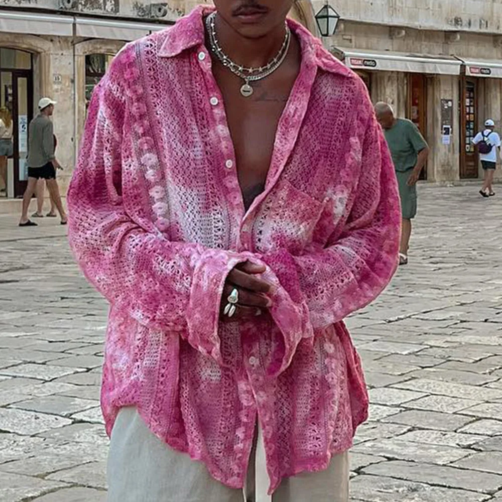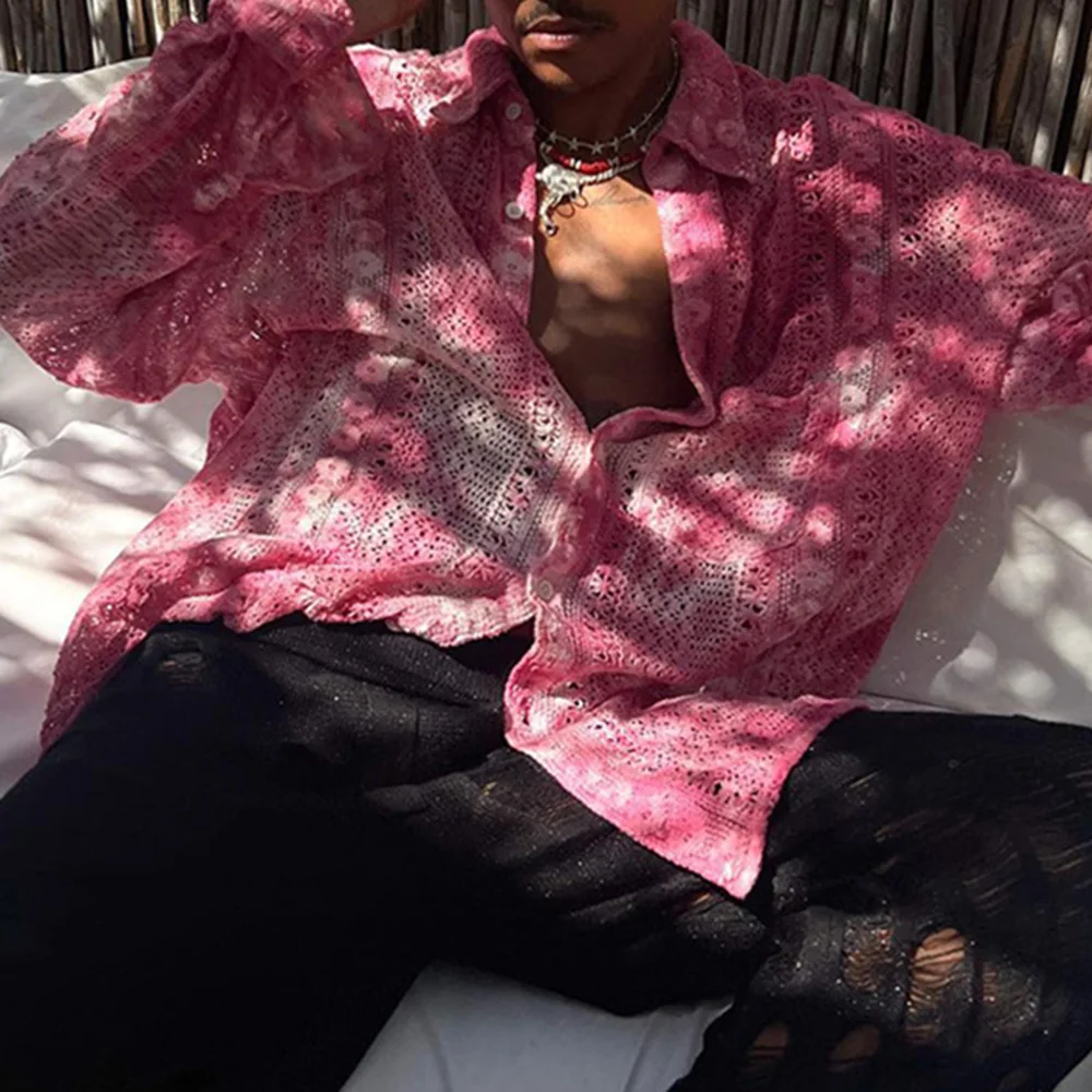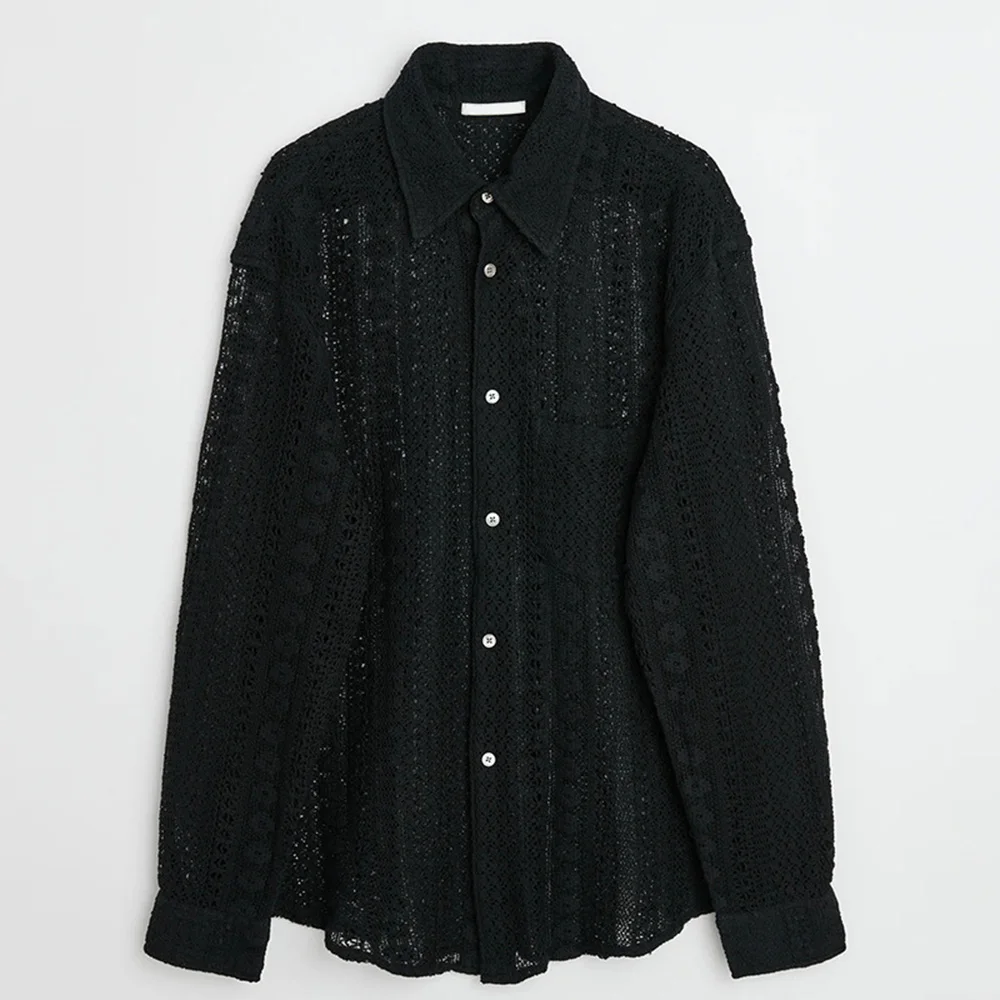 Threebooy Mens Shirt Casual Hollow Mesh Perspective Tops Fashion Personality Niche Outerwear Breathable Shirt Men'S Clothing Summer New