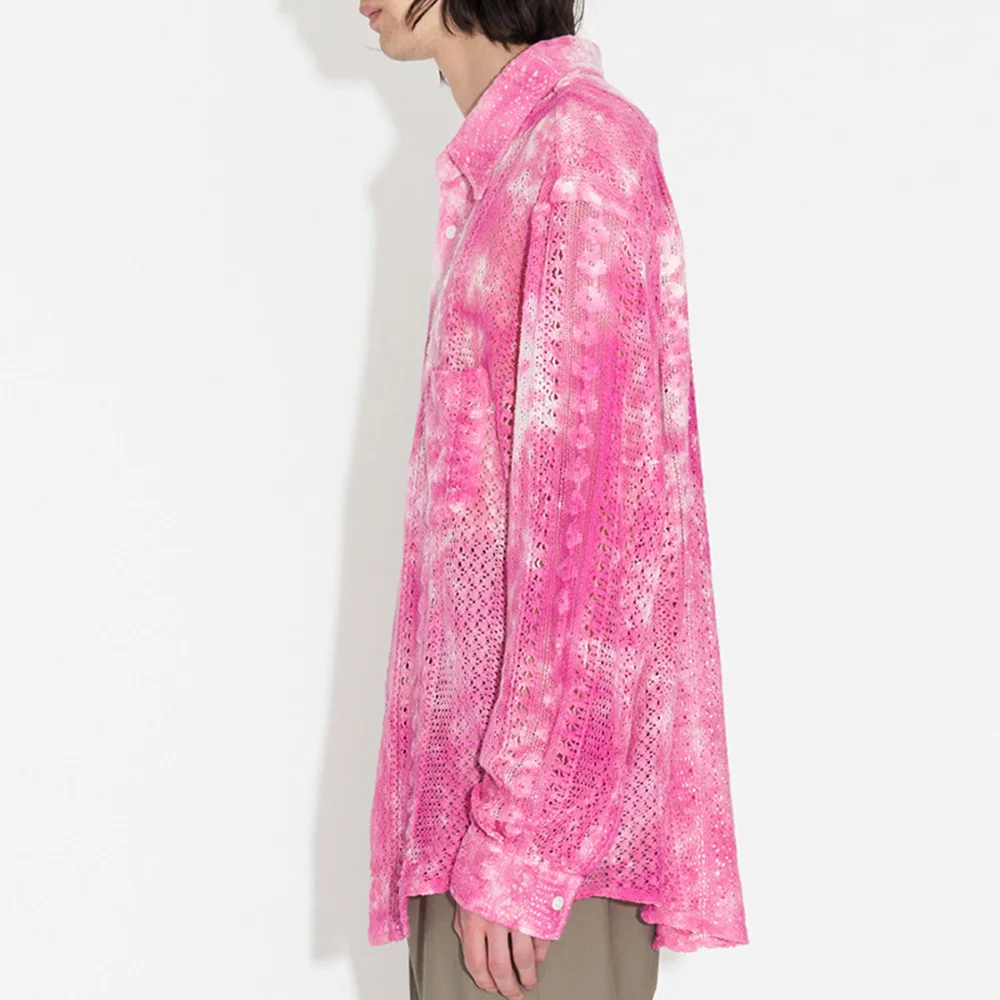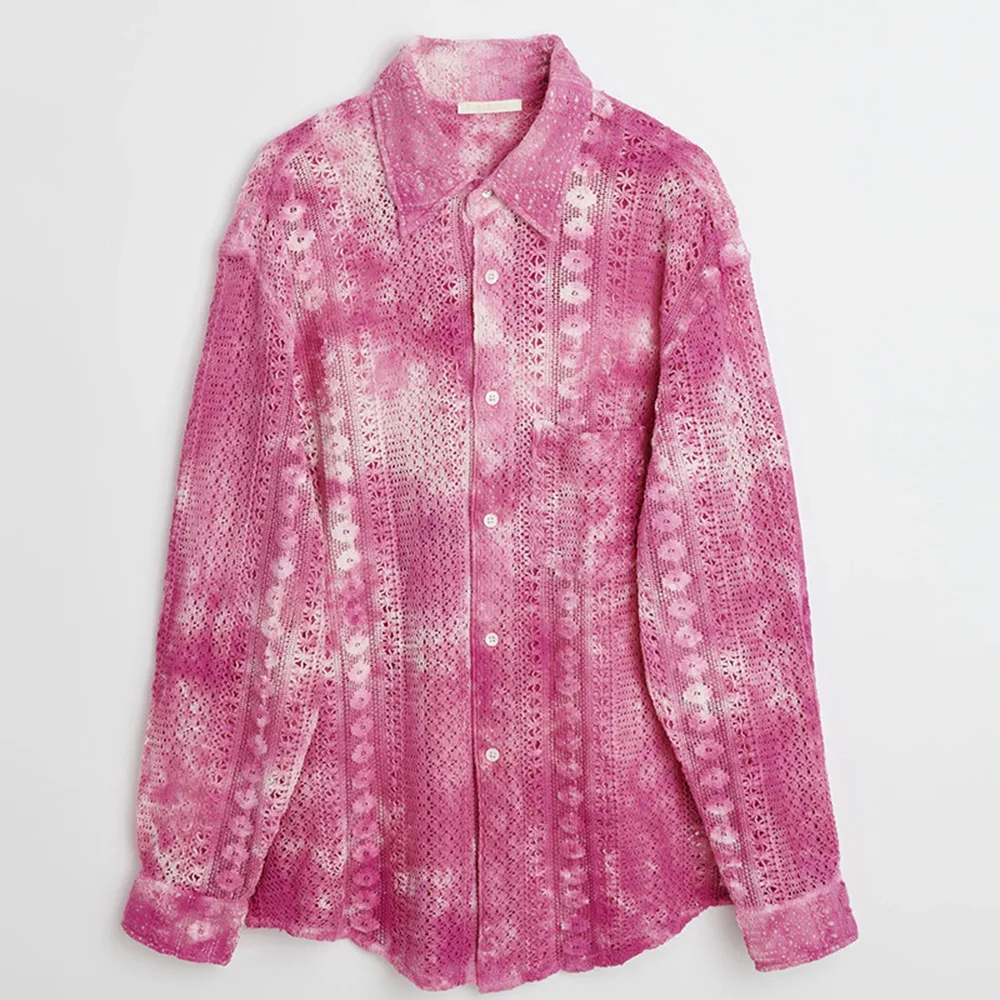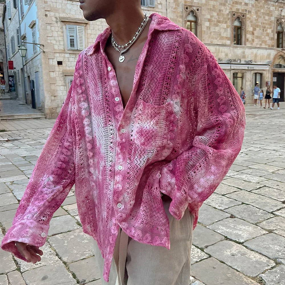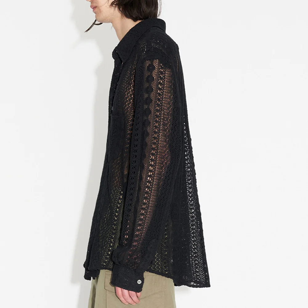 Threebooy Mens Shirt Casual Hollow Mesh Perspective Tops Fashion Personality Niche Outerwear Breathable Shirt Men'S Clothing Summer New