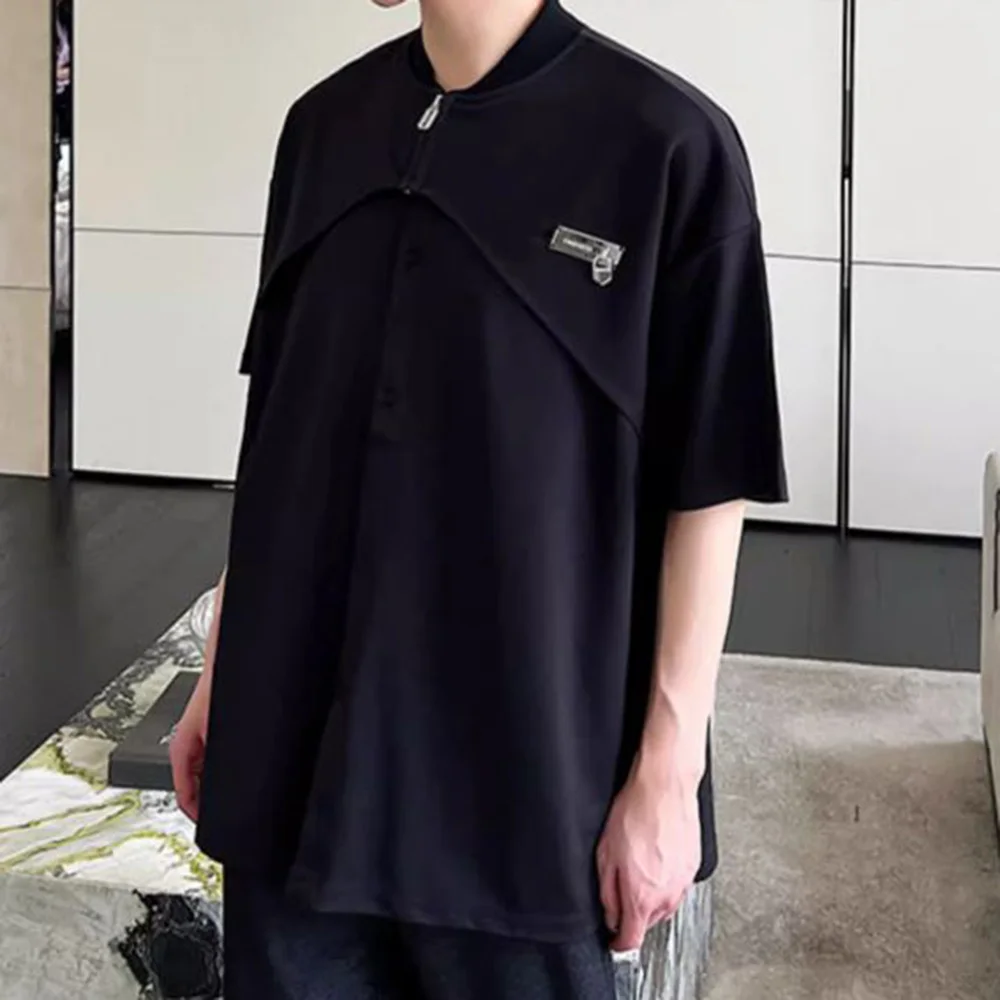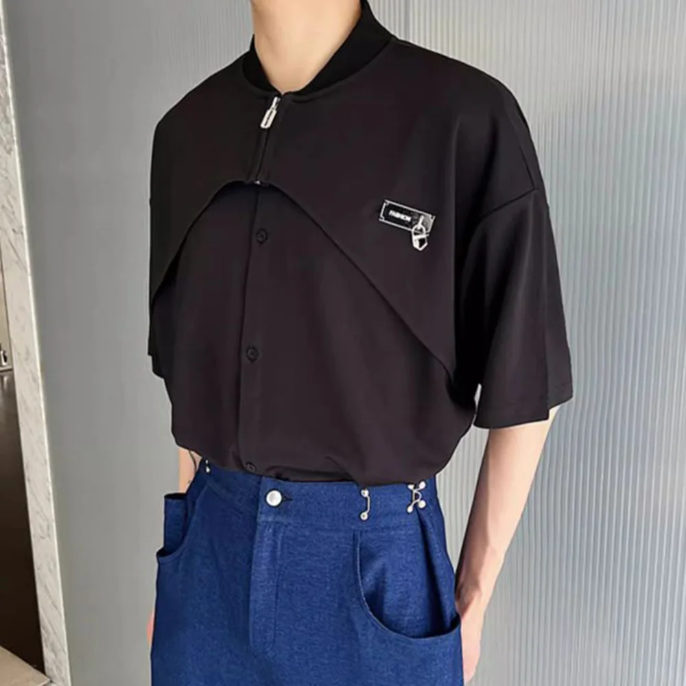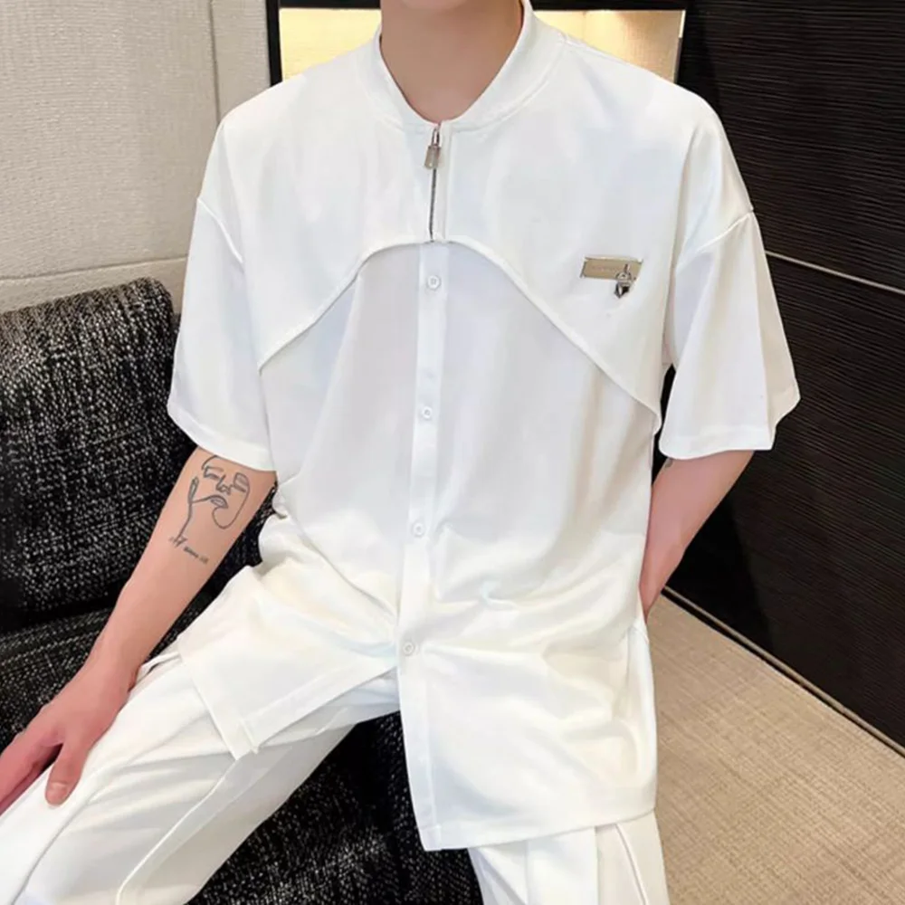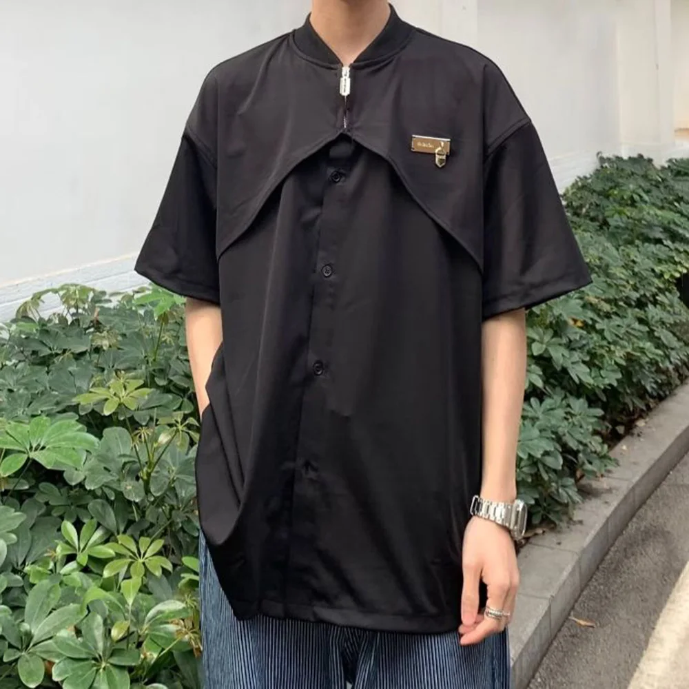 Threebooy Mens Shirt Laminated Metal Decoration Tops Casual Niche Dark Style Personality All-Match Shirt Men'S Clothing 2024 Summer New