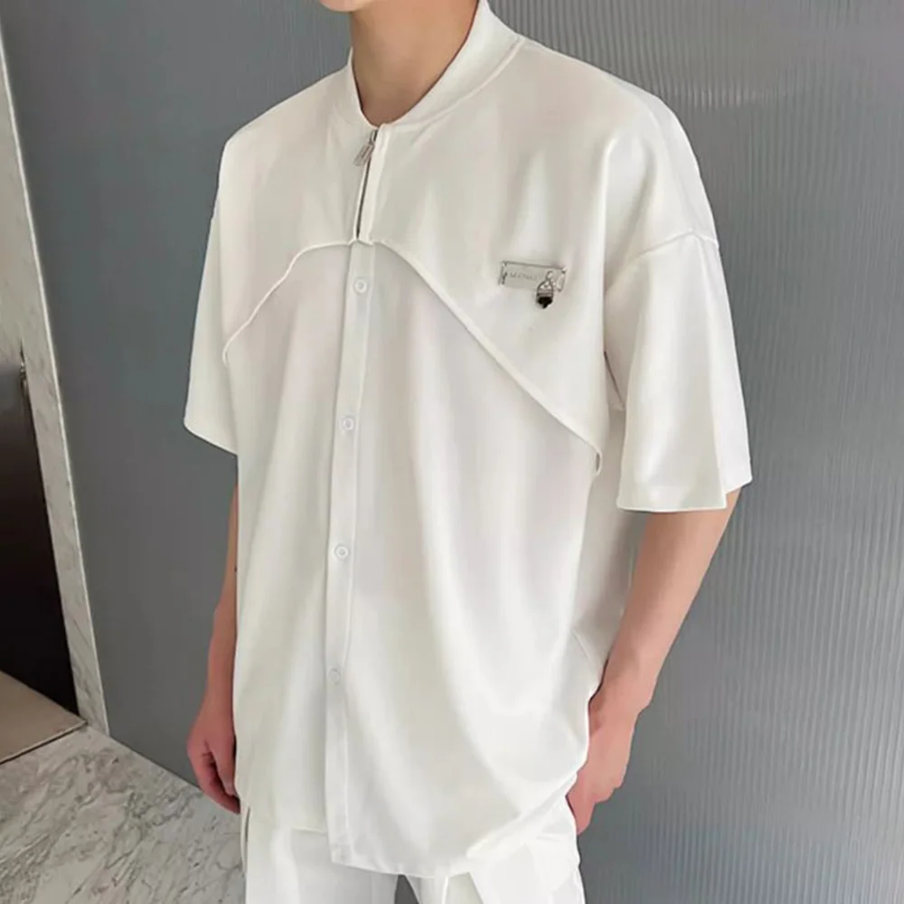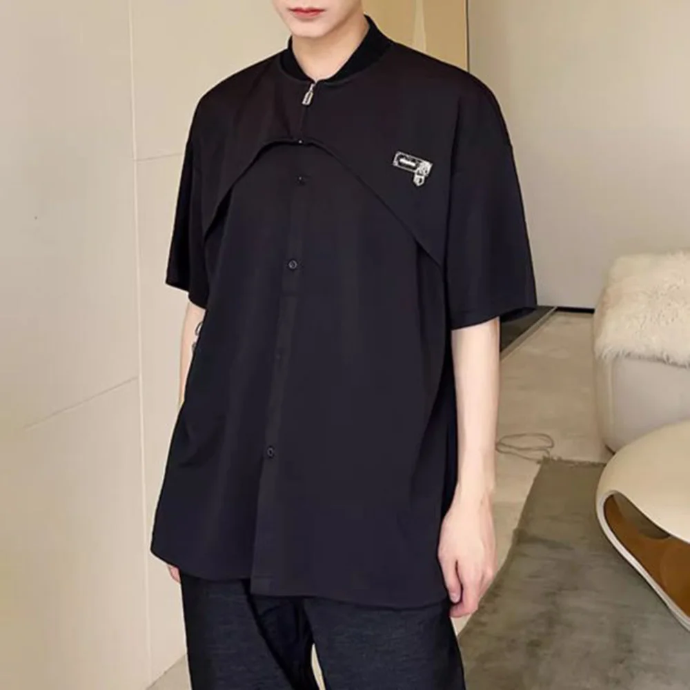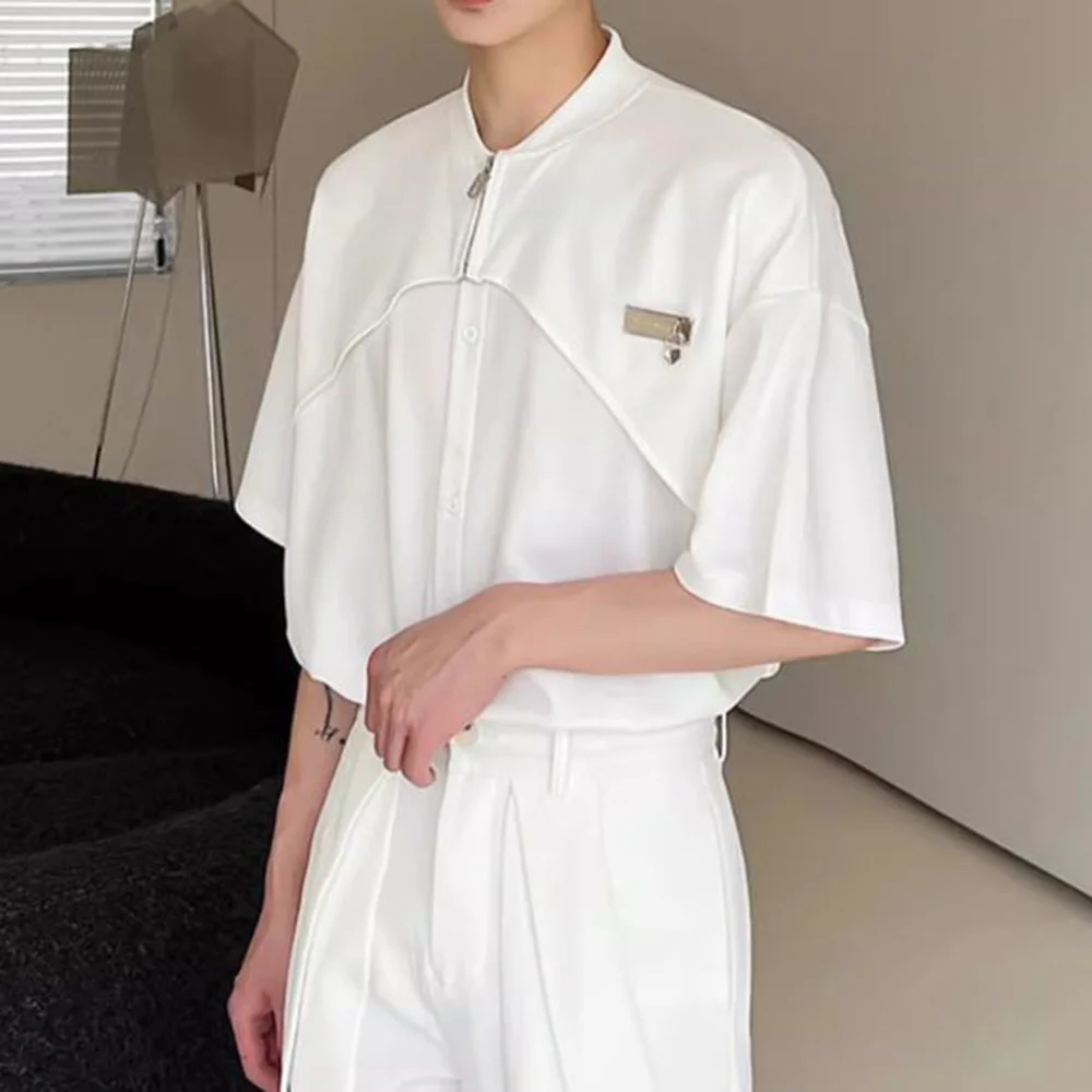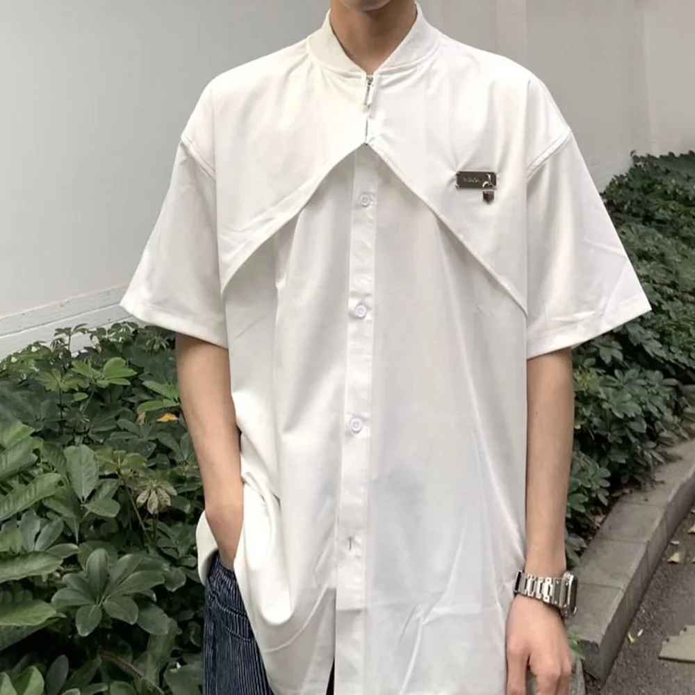 Threebooy Mens Shirt Laminated Metal Decoration Tops Casual Niche Dark Style Personality All-Match Shirt Men'S Clothing 2024 Summer New