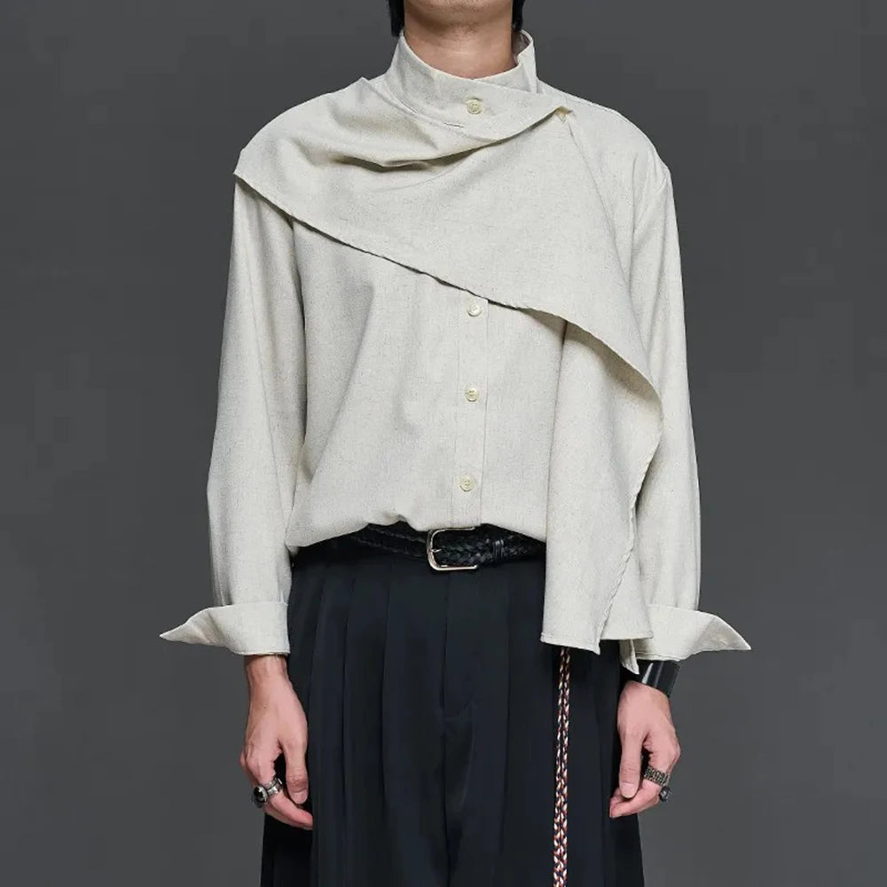 Threebooy Mens Shirt Scarf Ribbon Decoration Shirt Autumn Streetwear Japanese Dark Style Campus Performance Long-Sleeve Top Men'S Clothing