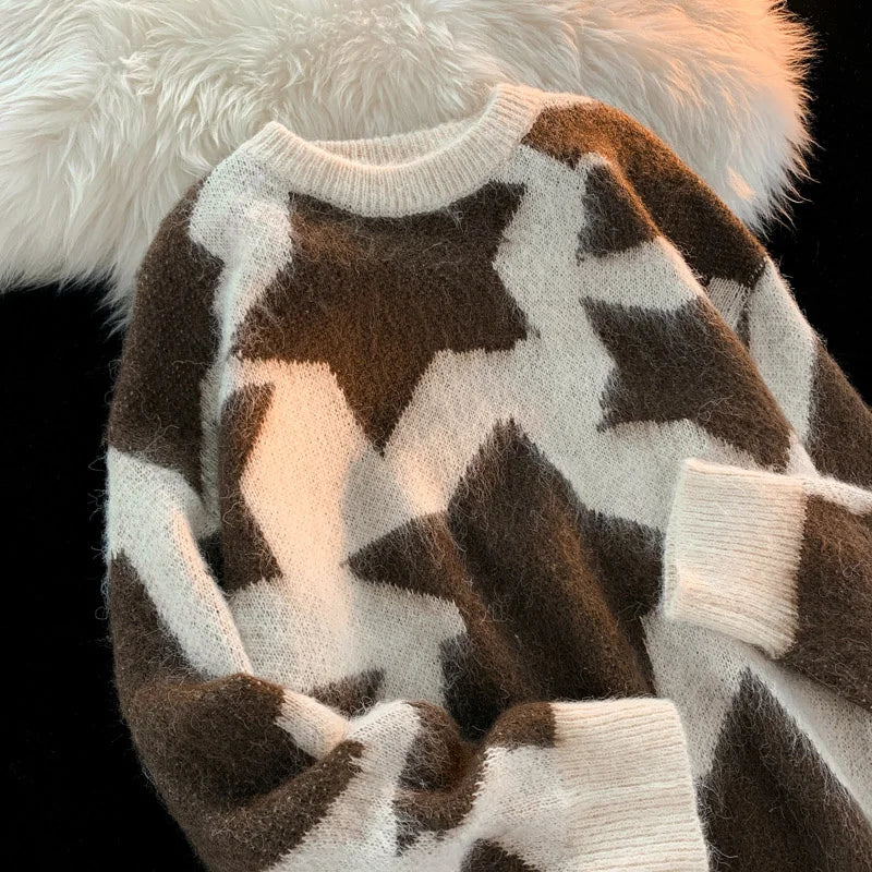 Threebooy Men's Star Pullover Sweater Knit Women's Loose Autumn Winter Couple Knitted Round Neck Long Sleeves Casual Sweaters Tops