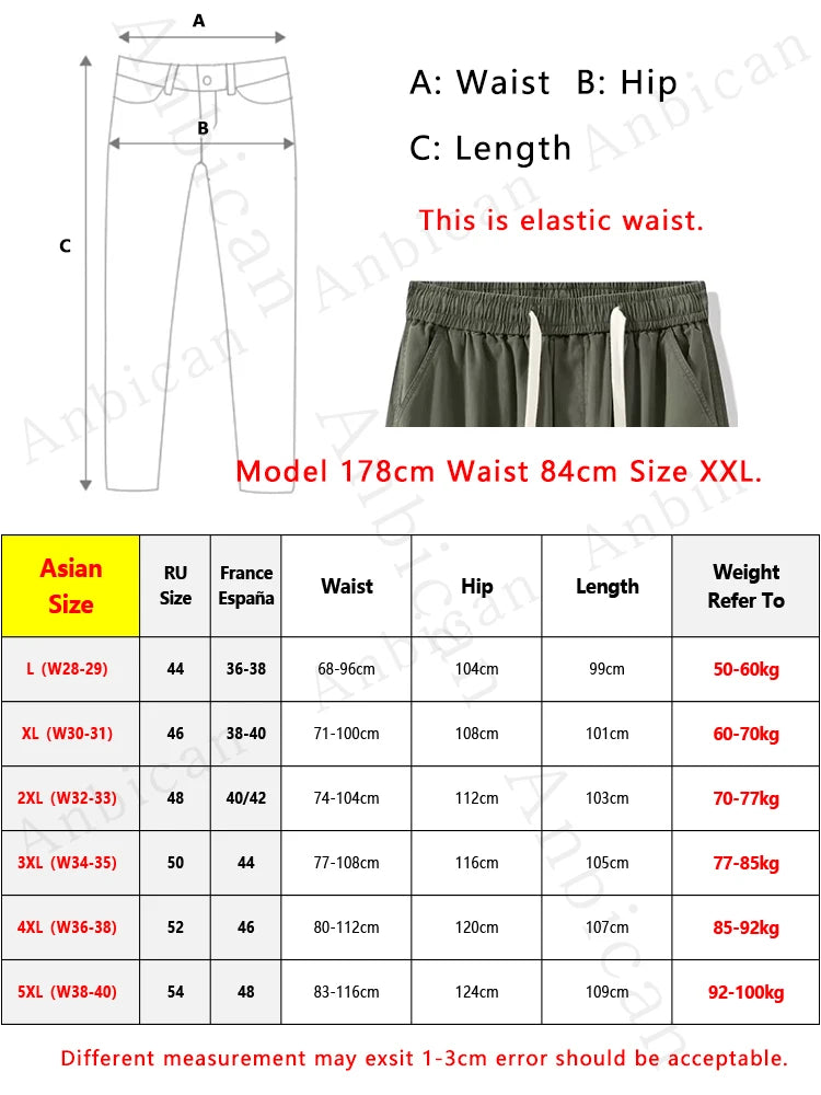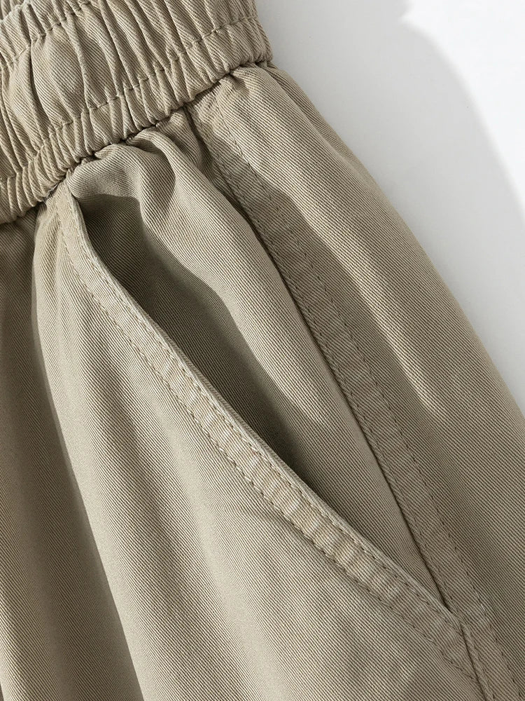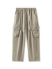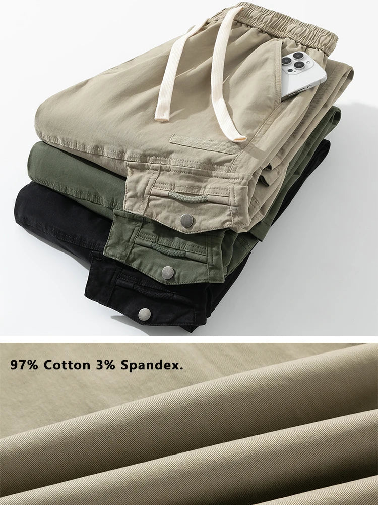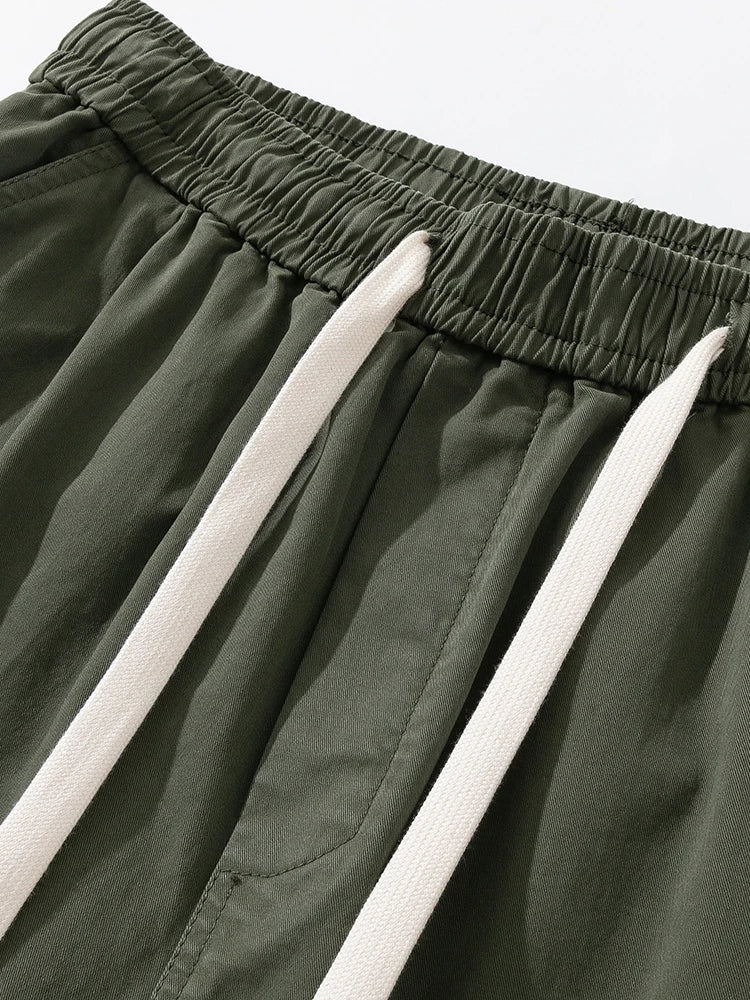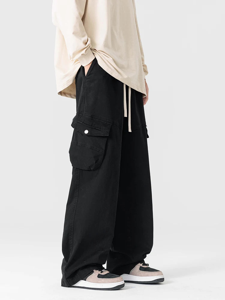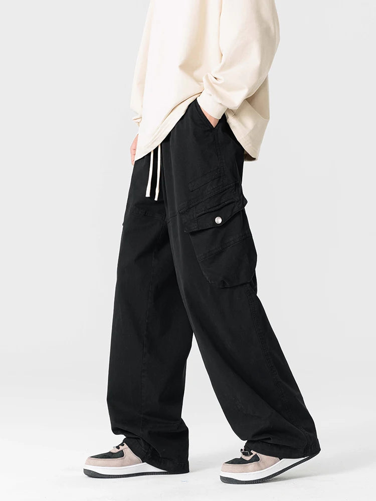 Threebooy Men's Straight Cargo Pants with 4 Pockets Washed Cotton Drawstring Elastic Waist Wide Leg Workwear Casual Pants Loose Fit