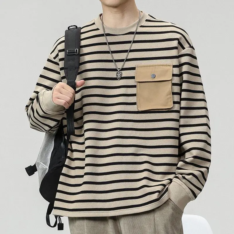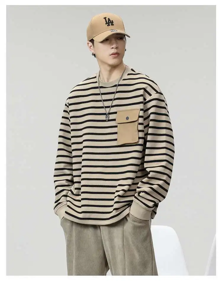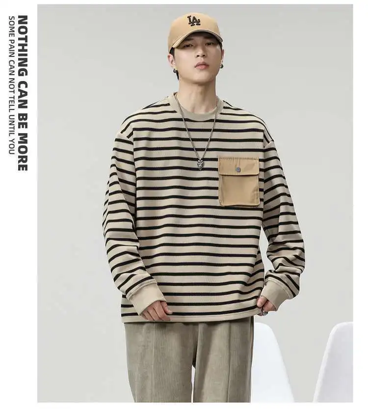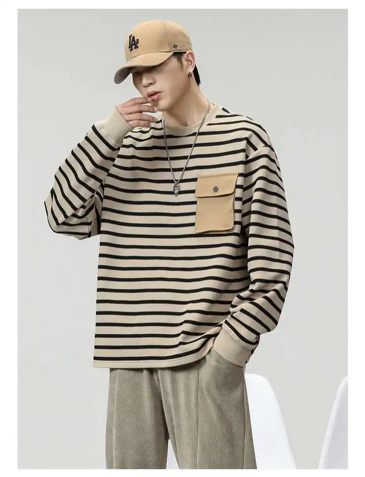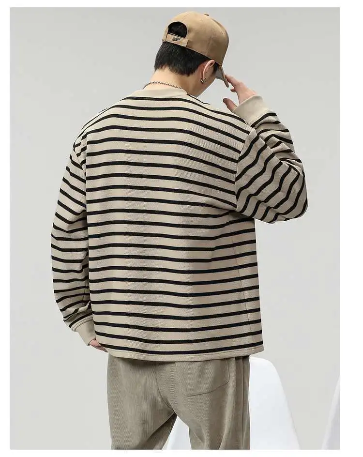 Threebooy Men's Striped Long Sleeved T-shirt Men's Trendy T-shirt Men's Hoodie Men's Base Shirt Top