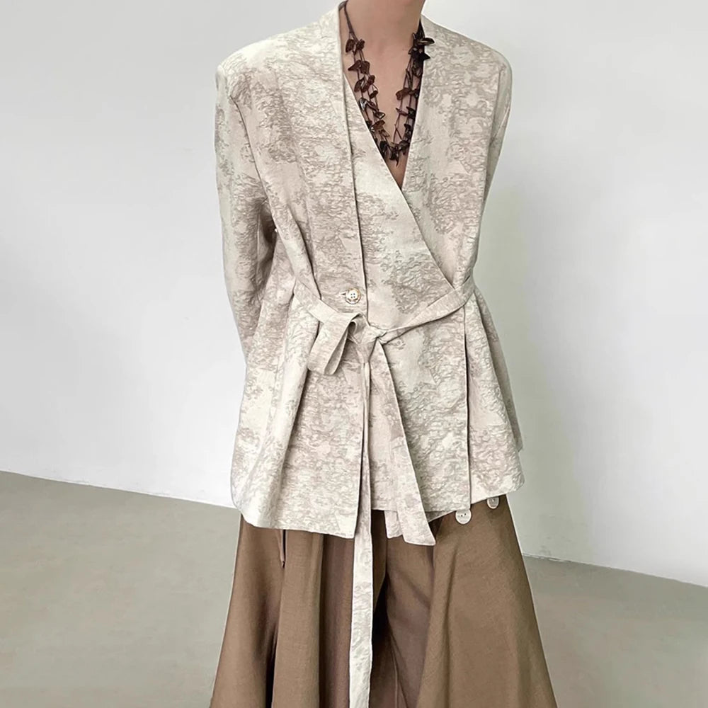 Threebooy Mens Suit Jacket Jacquard Belt Elegant Apricot Suit Neutral Chinese Style Retro Court Style Casual Long-Sleeved Top Unisex