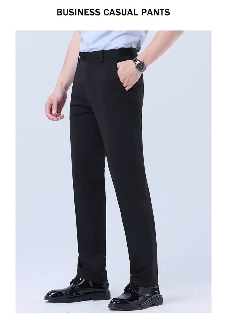 Threebooy Men's Suit Trousers Spring Autumn Straight Elastic Iron-free Workwear Father's Trousers Business Casual Trousers