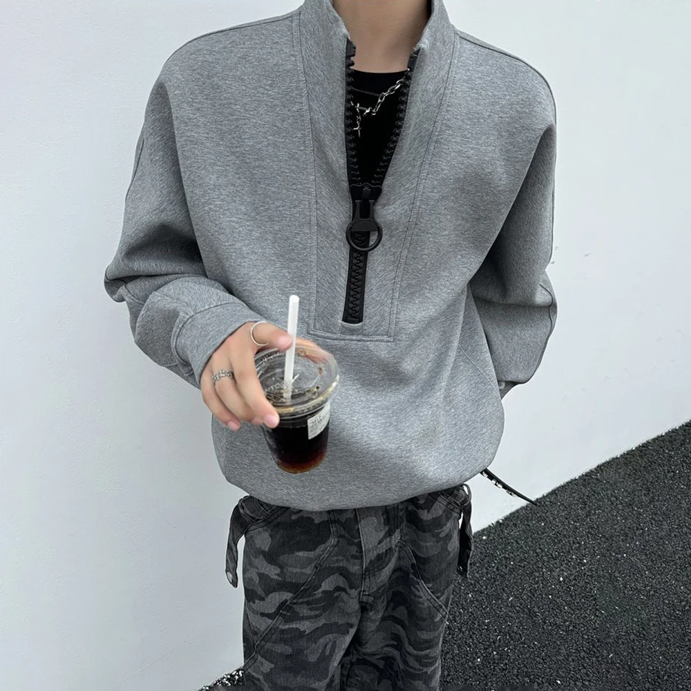 Threebooy Mens Sweatshirt Half Zip Casual Coat Autumn Street Wear Fashion All-Match Trend Youth Campus Long Sleeve Top Men'S Clothing