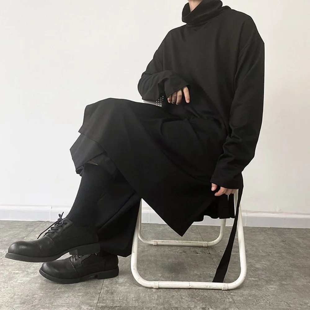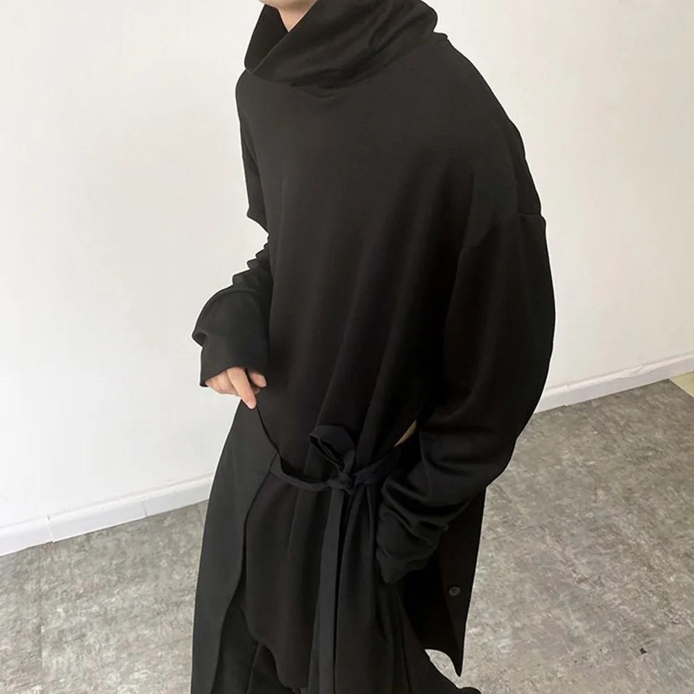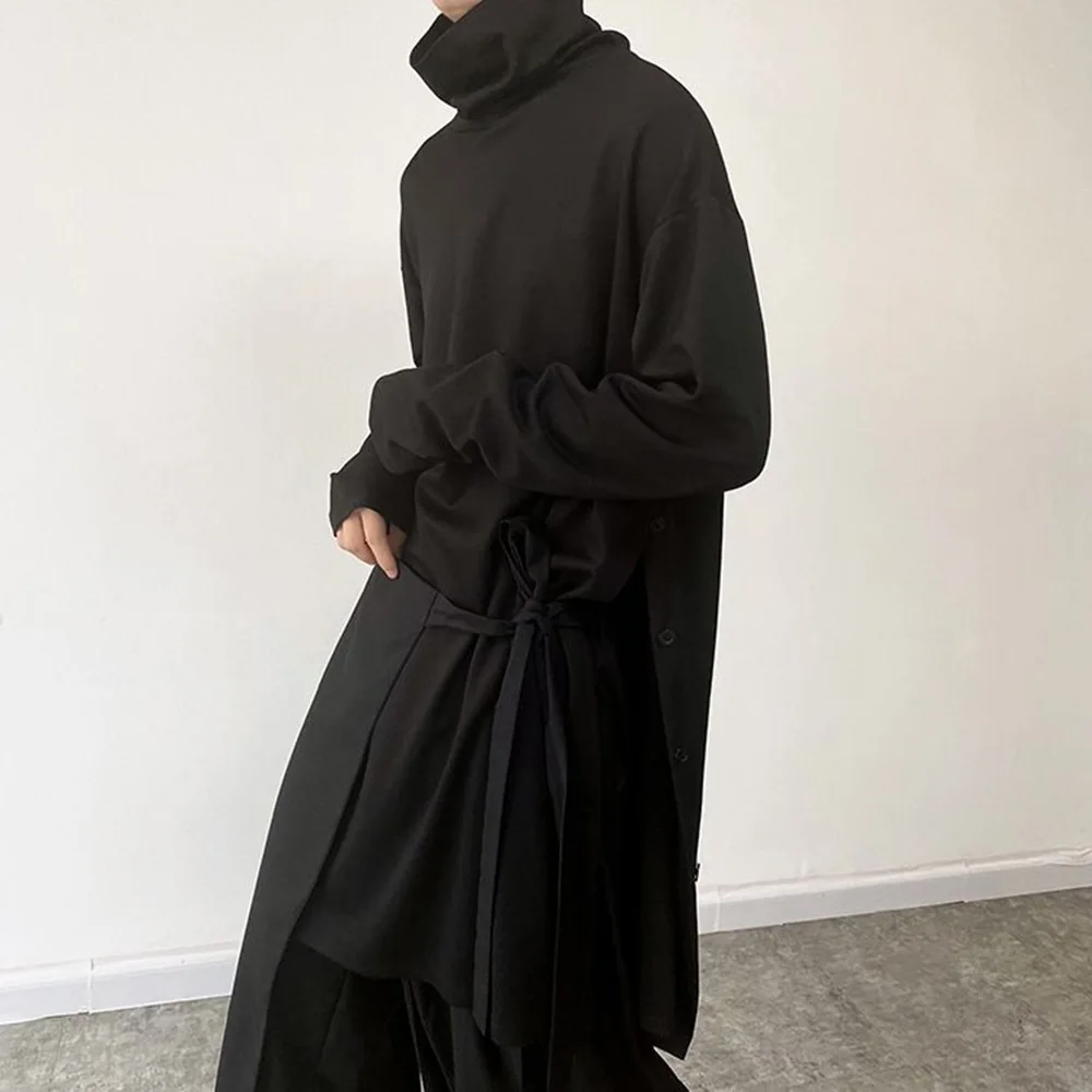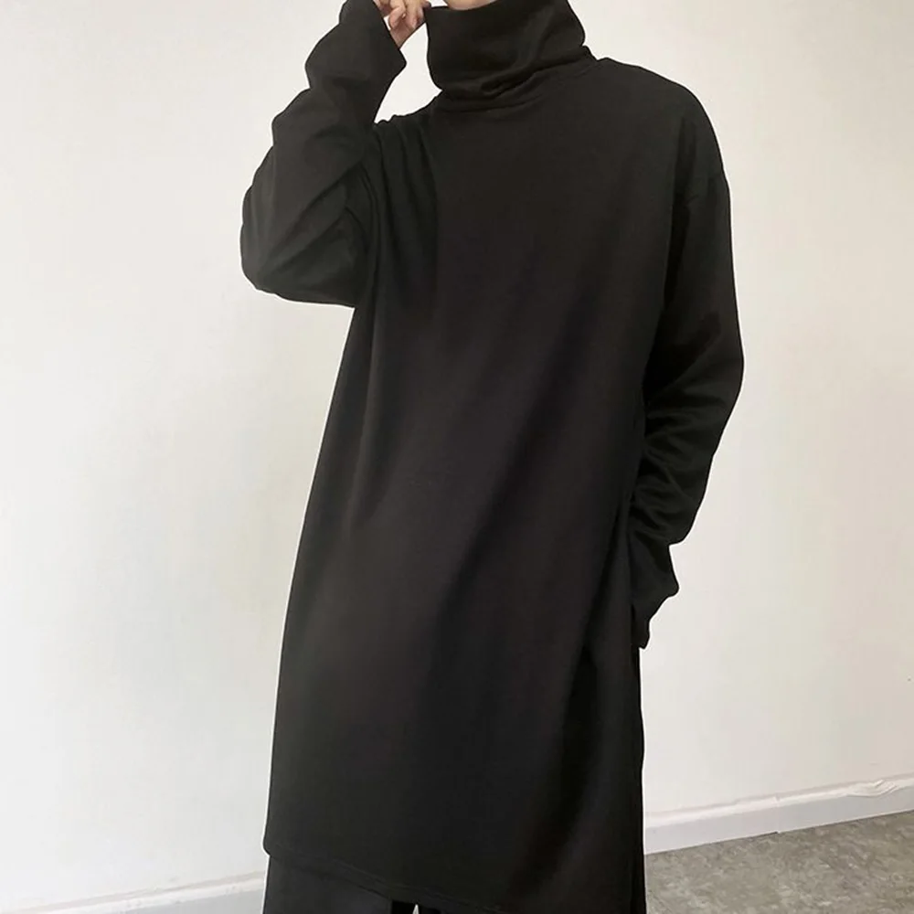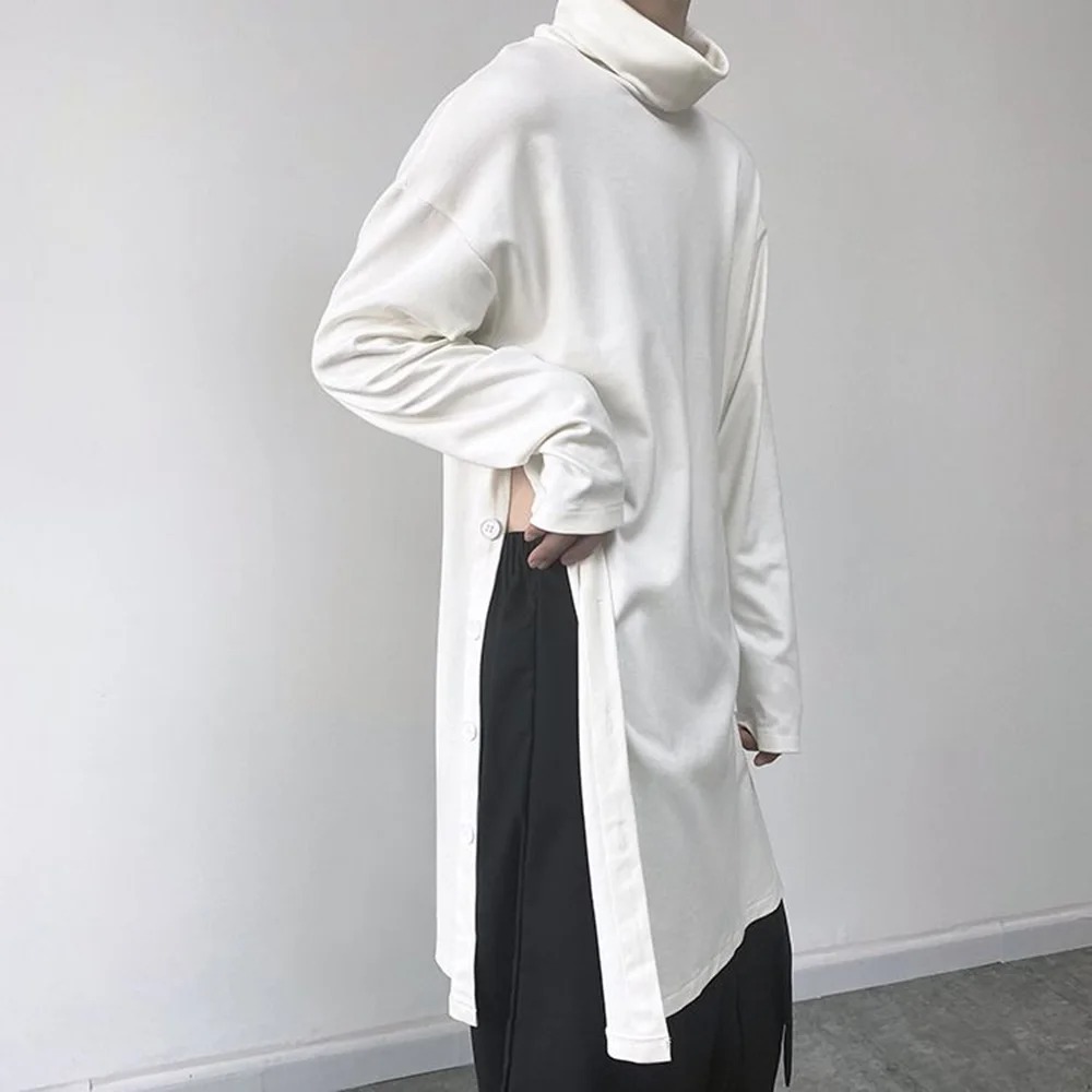 Threebooy Mens Sweatshirt Side Slit Long Y2k Casual Tops Autumn Fashion Dark Harajuku Goth Streetwear Long Sleeve T-Shirt Men'S Clothing