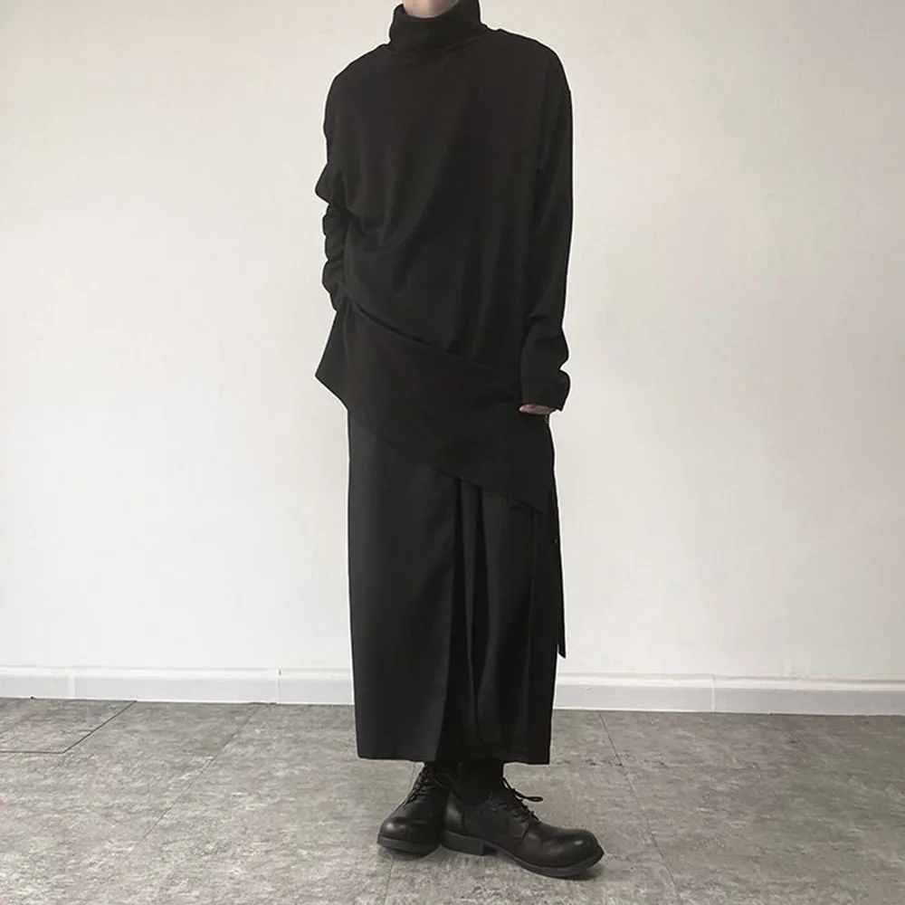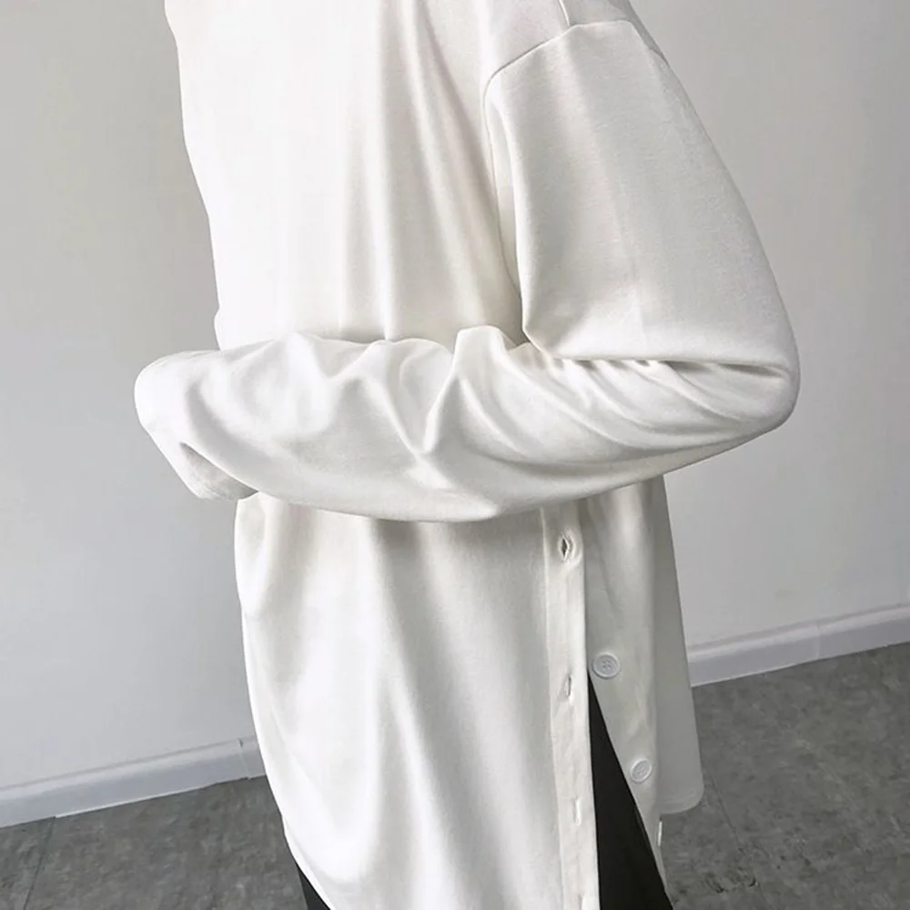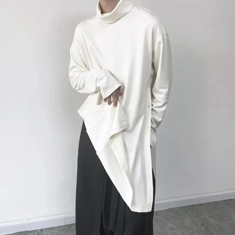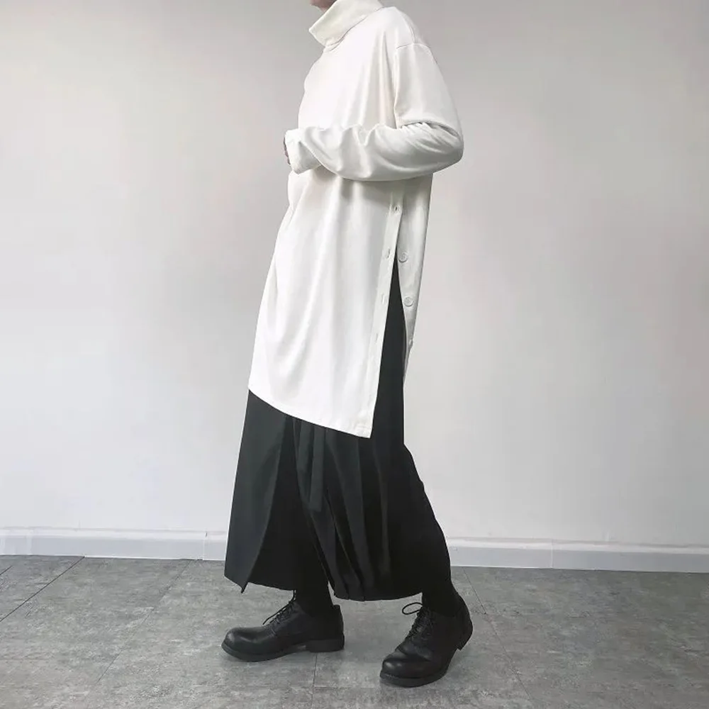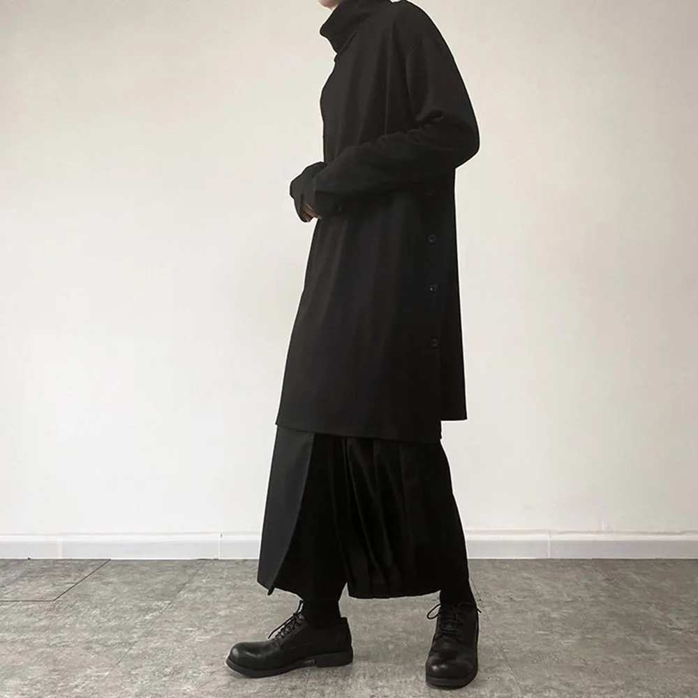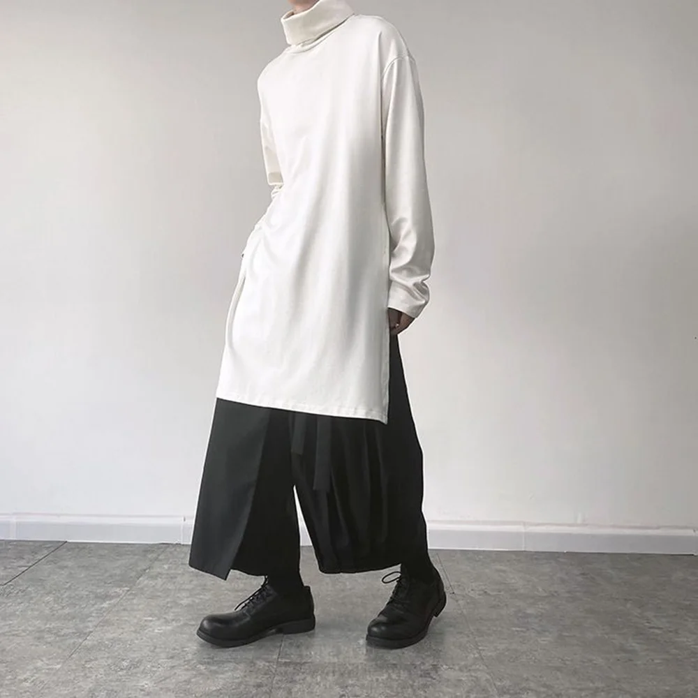 Threebooy Mens Sweatshirt Side Slit Long Y2k Casual Tops Autumn Fashion Dark Harajuku Goth Streetwear Long Sleeve T-Shirt Men'S Clothing