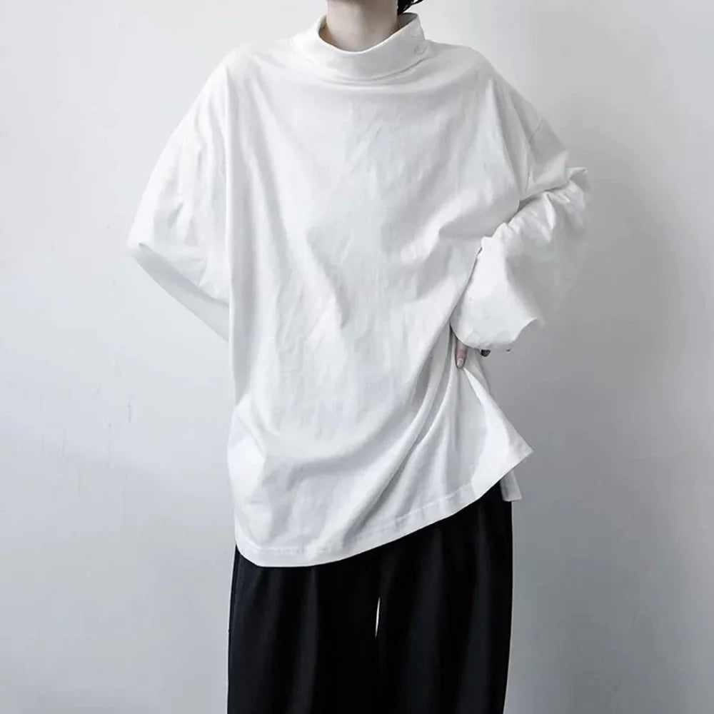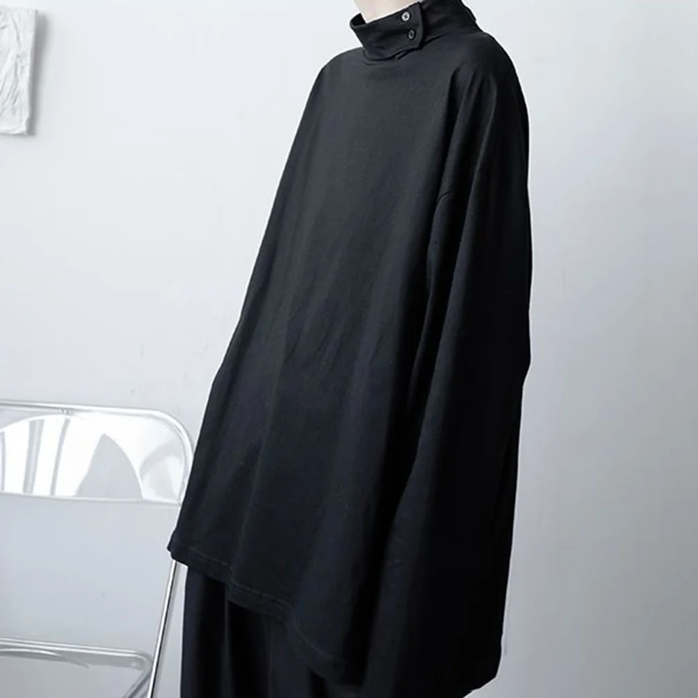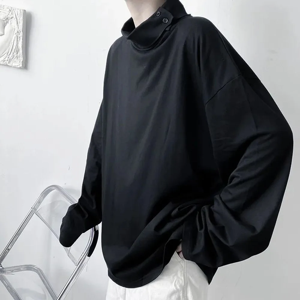 Threebooy Mens T-Shirt Button Half Turtleneck T-Shirt Autumn Japanese Streetwear Temperament Personality Long Sleeve Top Men'S Clothing