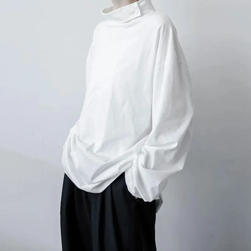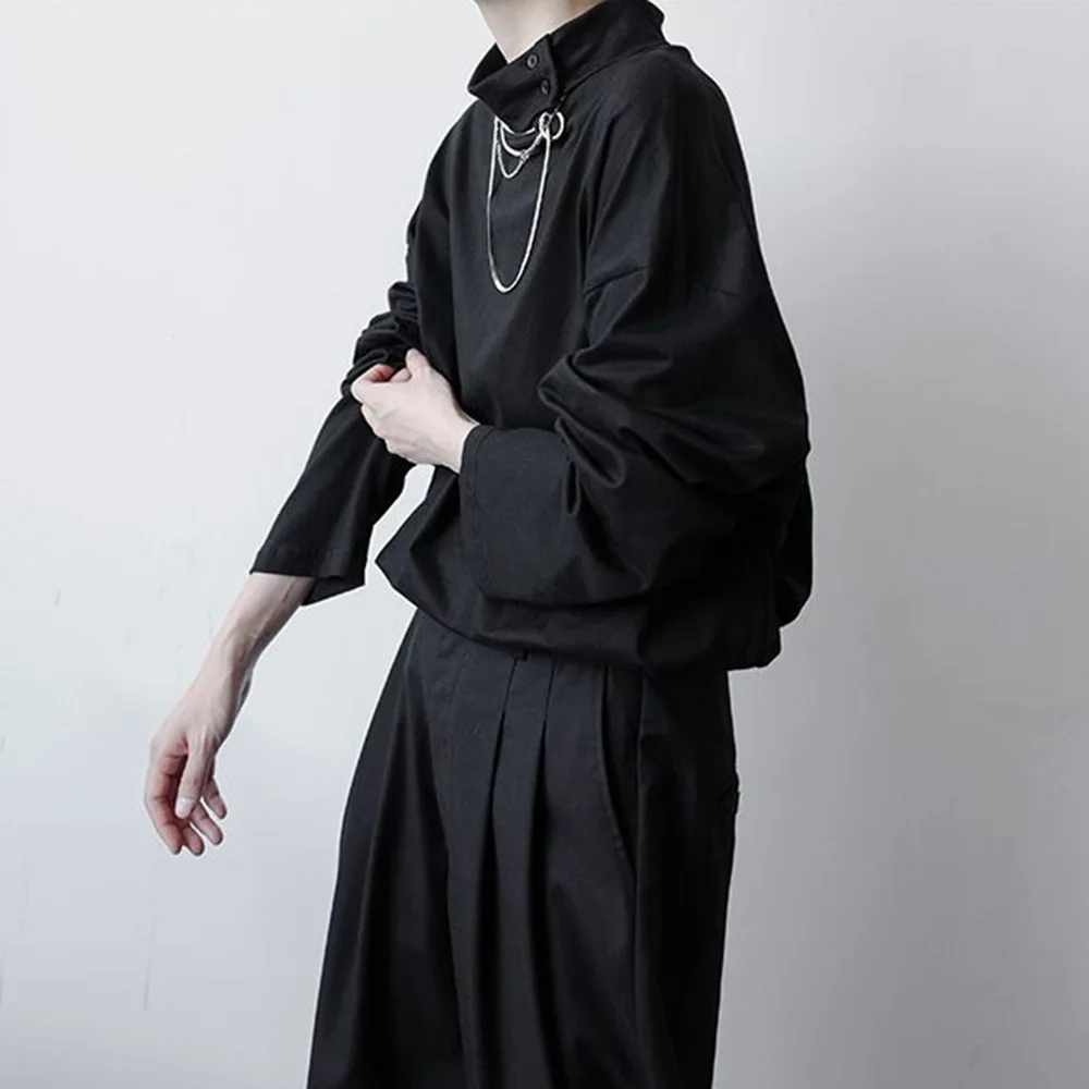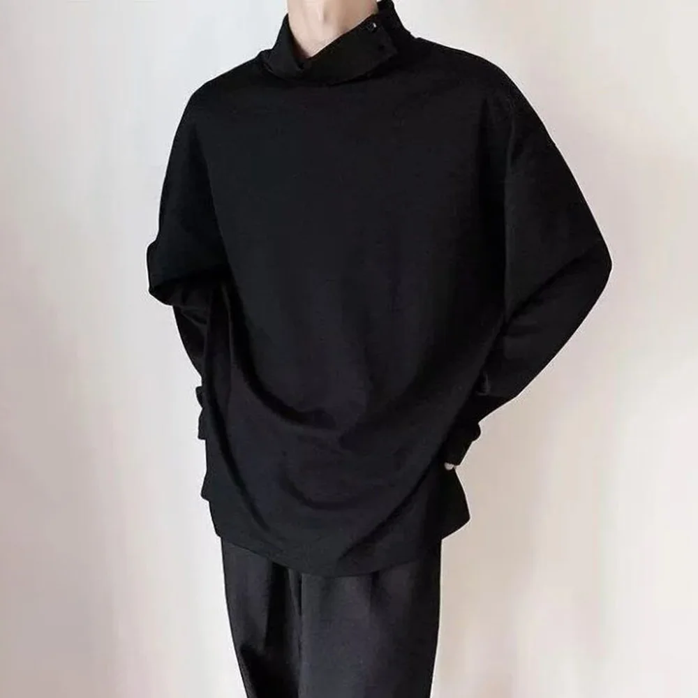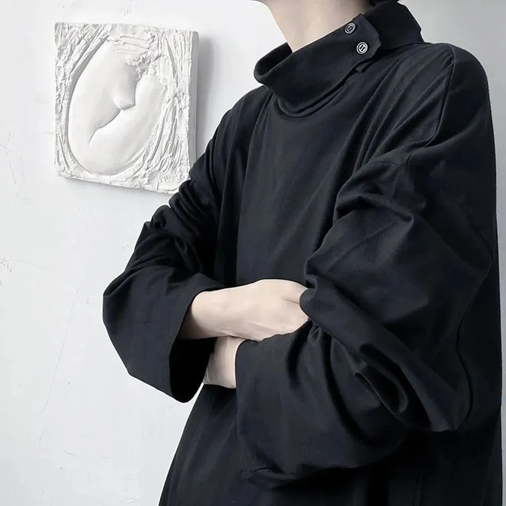 Threebooy Mens T-Shirt Button Half Turtleneck T-Shirt Autumn Japanese Streetwear Temperament Personality Long Sleeve Top Men'S Clothing
