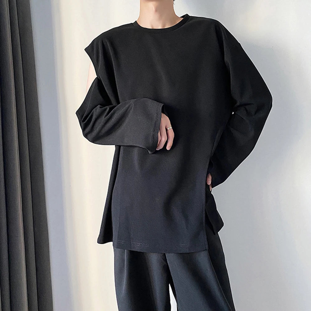 Threebooy Men's T Shirt Spring Autumn Tops Tees White Black Fashion T-shirt O-Neck Solid Long Sleeve Tops 2024 Streetwear Korean Clothing