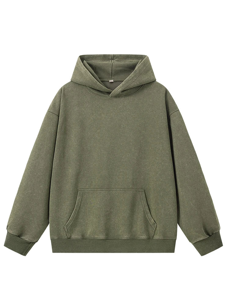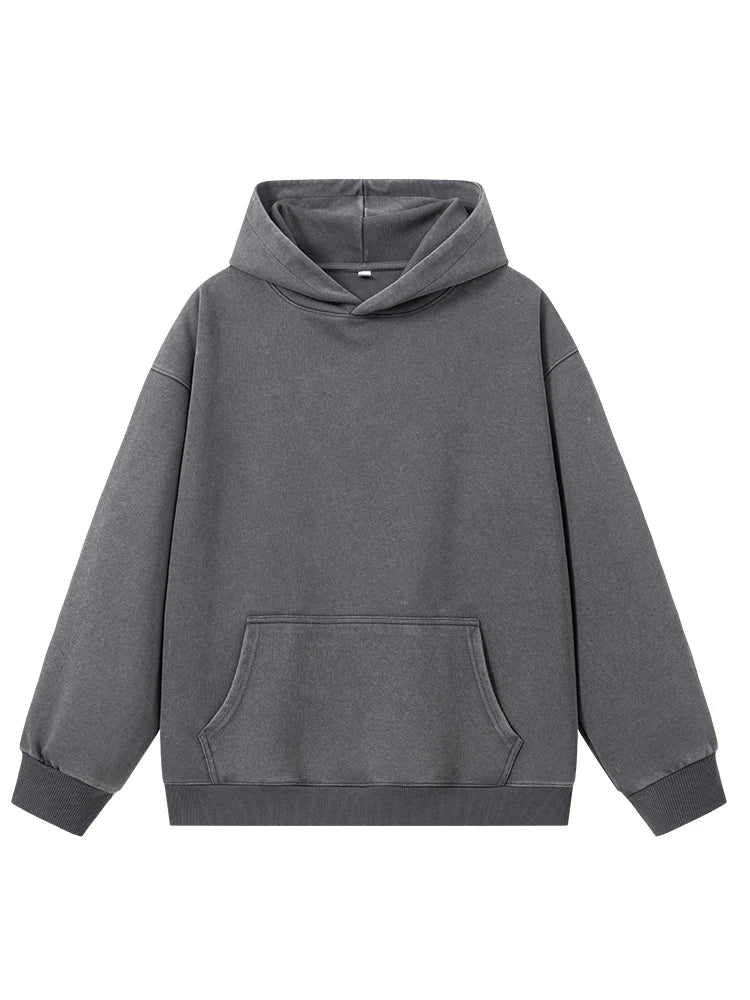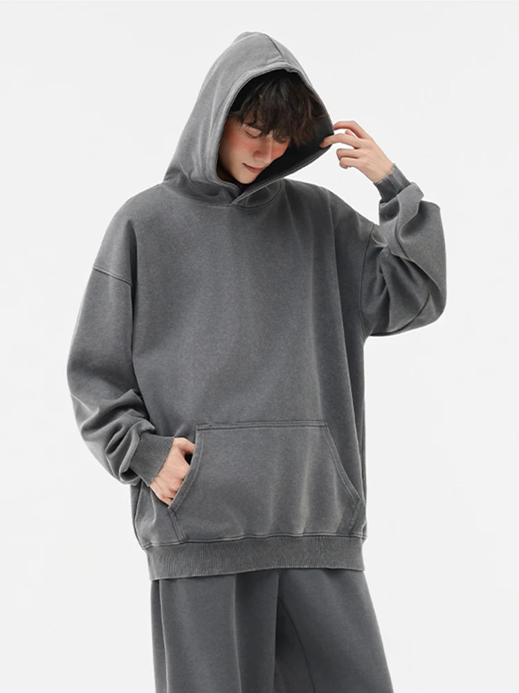 Threebooy Men's Washed Hoodies 330GSM Cotton Polyester Knit Pullover Oversized Tops Loose Fit Y2K Street Faded Hoody Sweatshirts