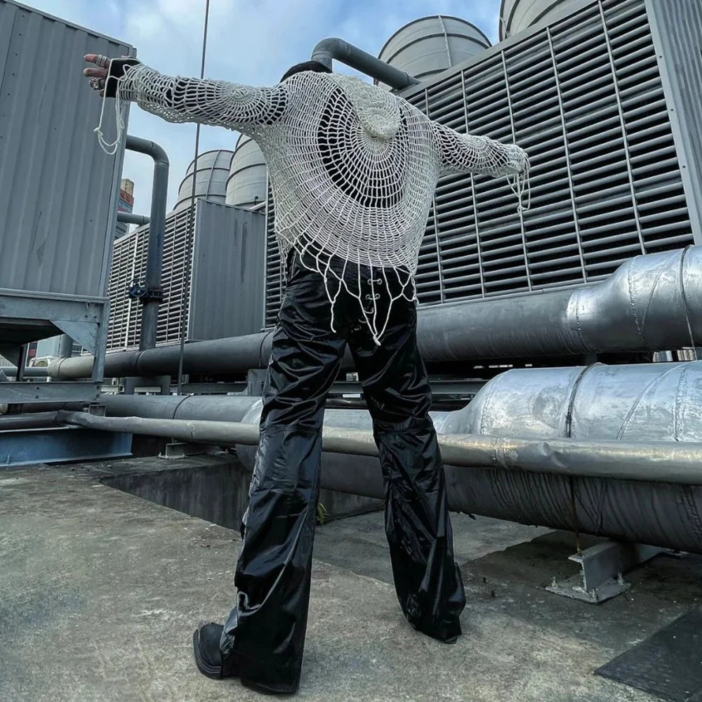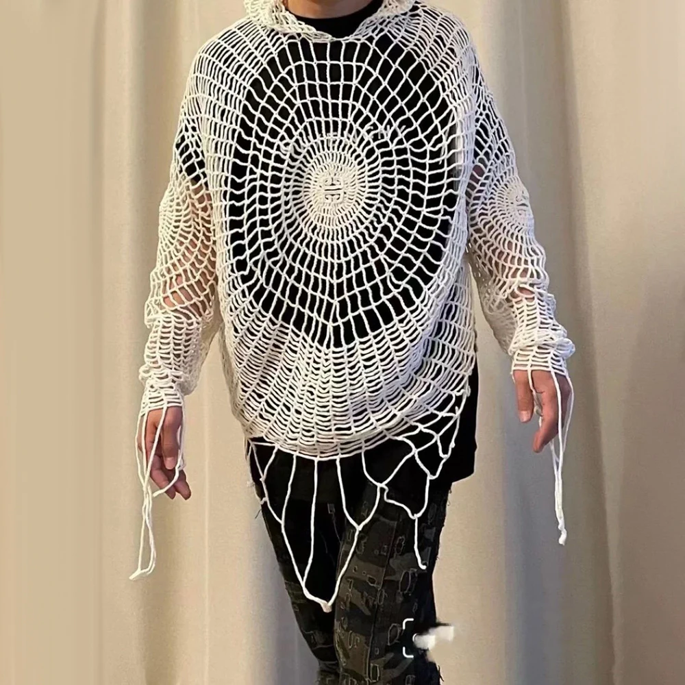 Threebooy Mens Y2k Clothes Spider Web Hollow Knitted Top Design 2024 New Fashion Personality Streetwear Pullover Knitted Clothing Unisex