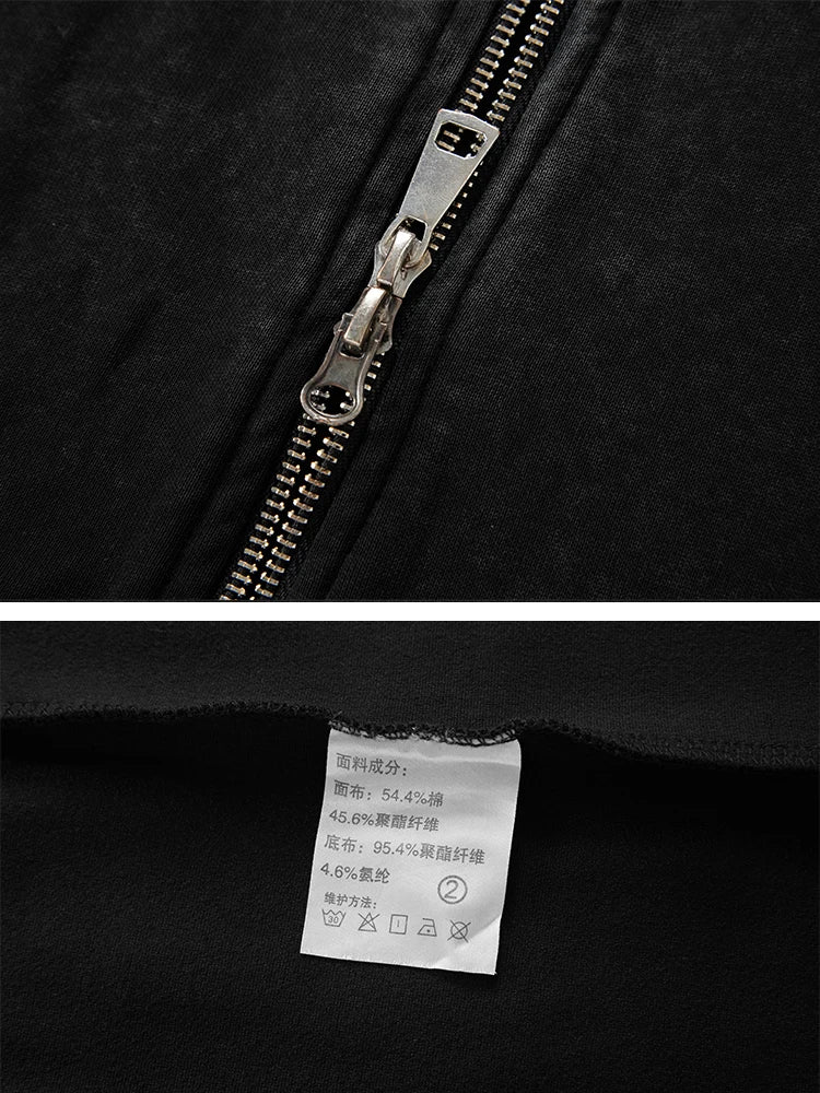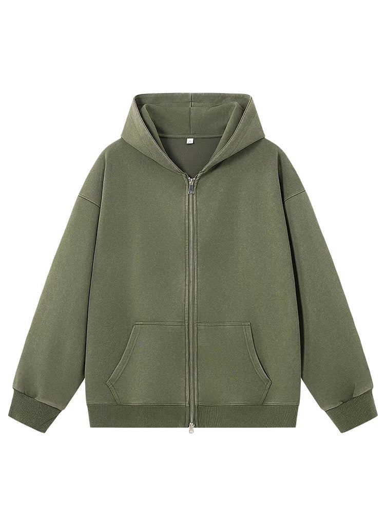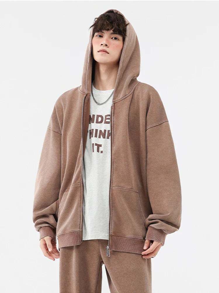 Threebooy Men's Zip-Up Washed Faded Hoodies 330GSM Cotton Polyester Knit Cardigan Tops Street Y2K Oversized Hoody Sweatshirts Unisex