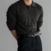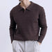 Threebooy New American Fashion Jacquarded Men Polo Sweater Light Luxury V Neck Knit Solid Color Long-sleeved Tops Premium Quality Knitwear