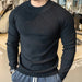 Threebooy New American Style Men Basic Sweater Fashion Fitness Knit Solid Color Long Sleeve Pullover Casual O Neck Retro Splicing Knitwear