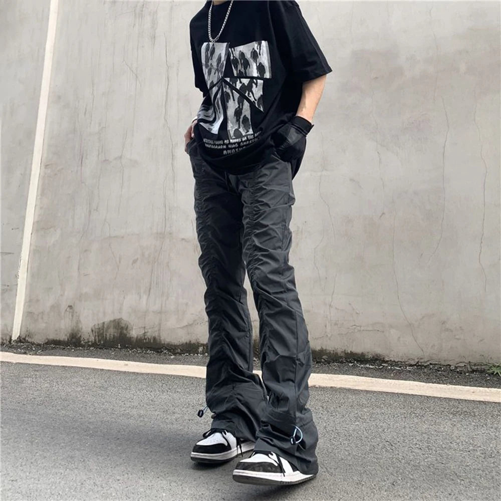 Threebooy New Black Wrinkle Pants Man Harajuku Punk Men's Streetwear Hip Hop Fashion Clothing Casual Tactical Trousers Y2k Goth Flared