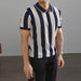 Threebooy New Chic Striped Polo Shirt Light Luxury Hollow Out Knitted T-shirts Korean Style Zipper Short Sleeve Tops Breathable Knitwear