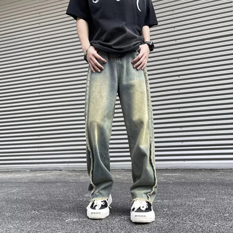 Threebooy New Fashion Old Y2K Streetwear Stacked Baggy Ripped Jeans Pants Men Clothing Straight Denim Trousers