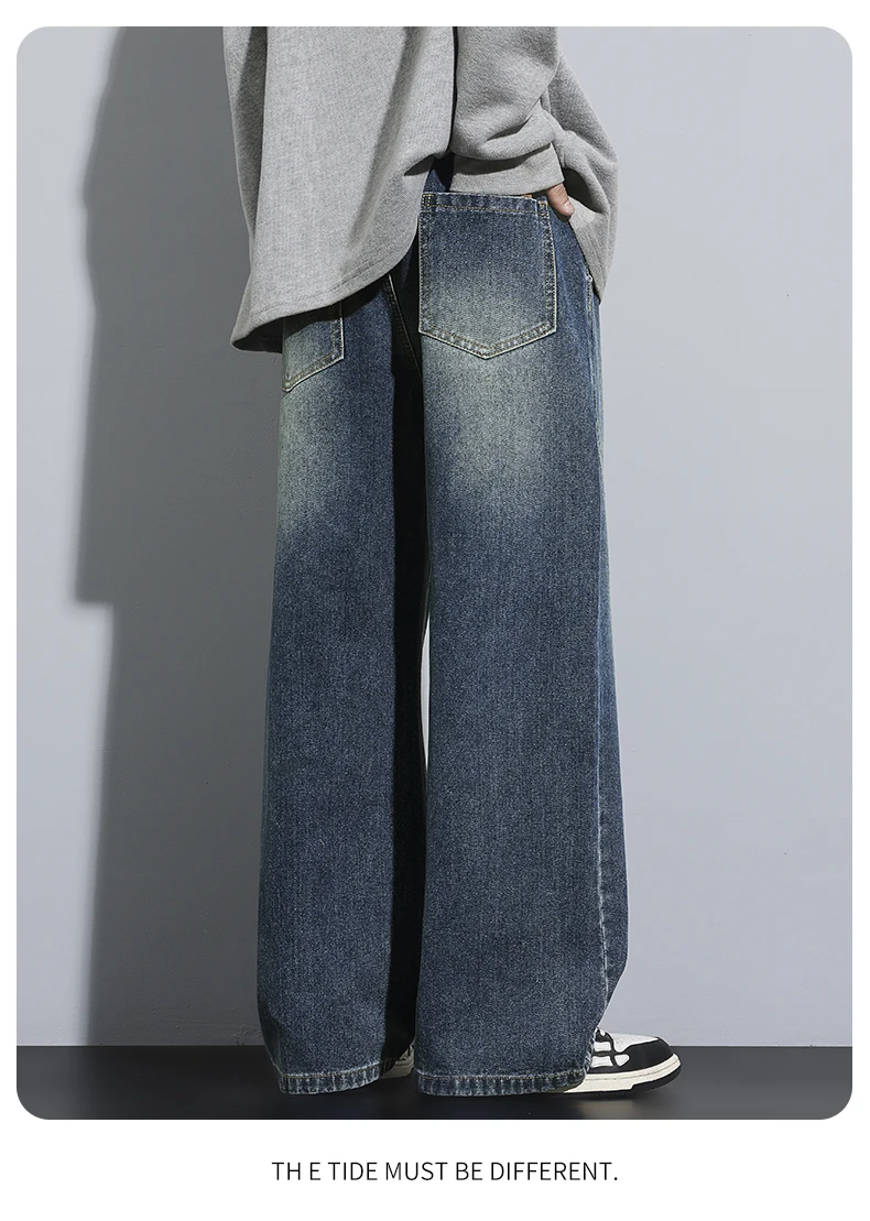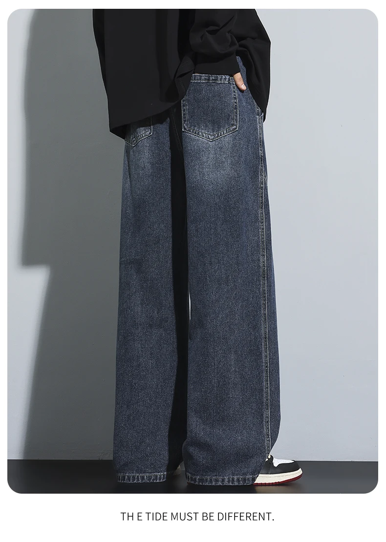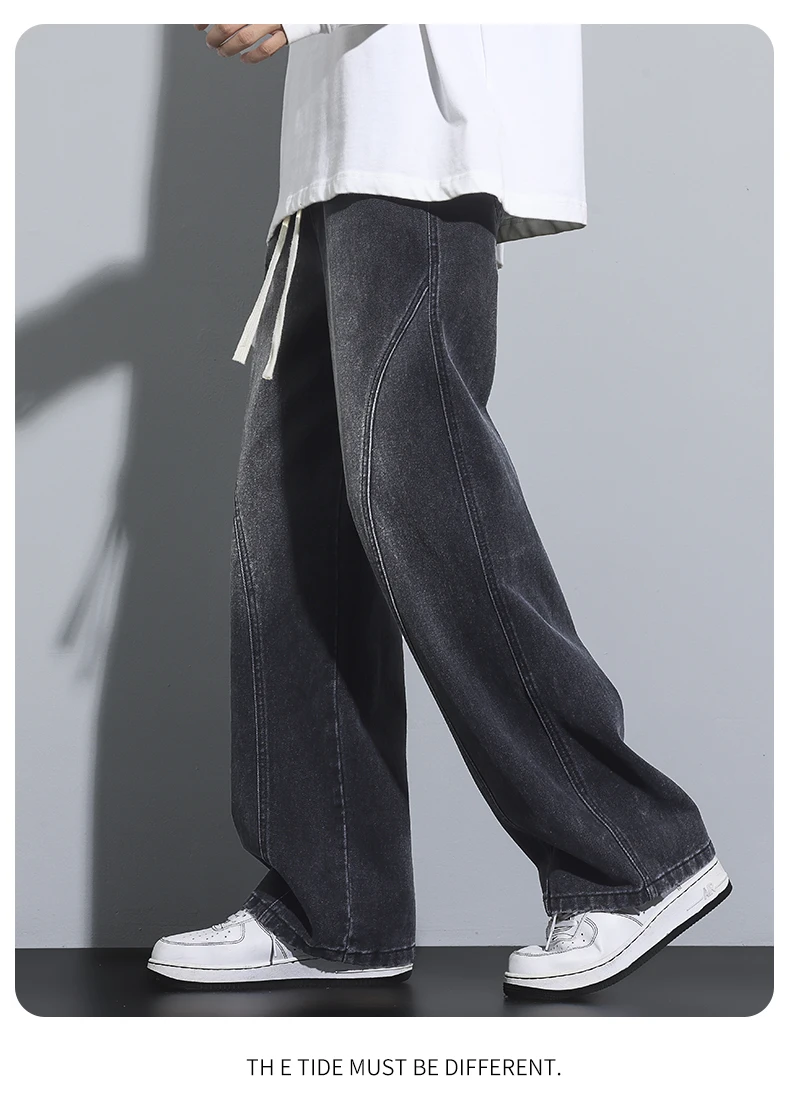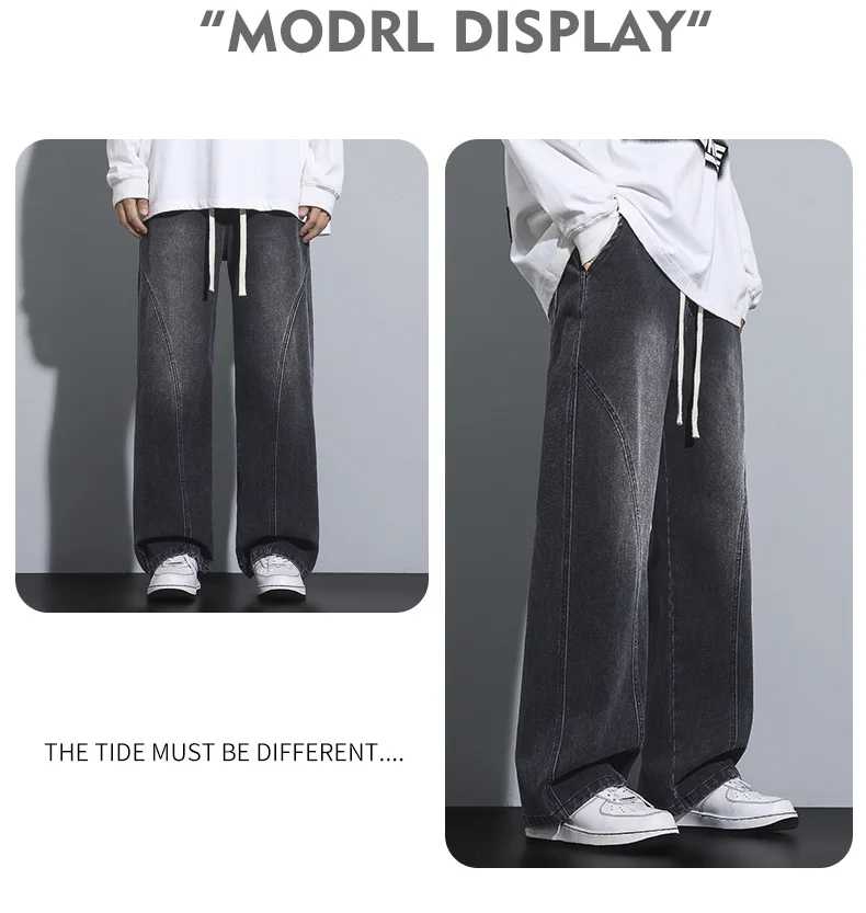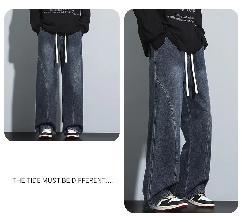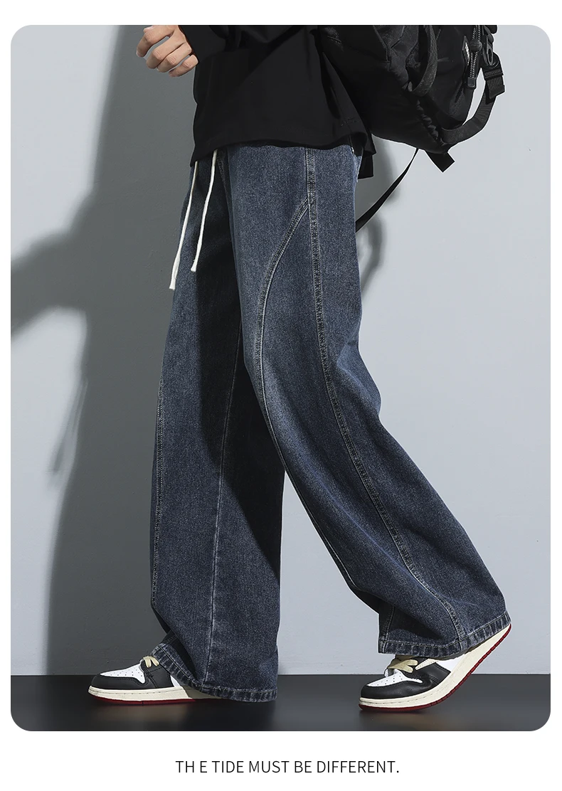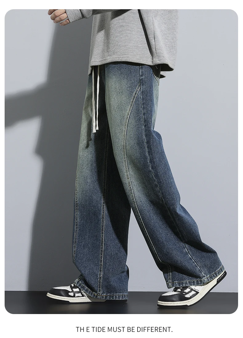Threebooy New Fashion Patchwork Men's Jeans Baggy Straight Elastic Waist Denim Pants Classic High Street Hip Hop Vintage Male Trousers