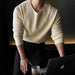 Threebooy New Korean Fashion Men T-shirt Luxury Knitted Solid Color O Neck Long Sleeve Tees Casual Premium Quality Textured Knitwear M-3XL