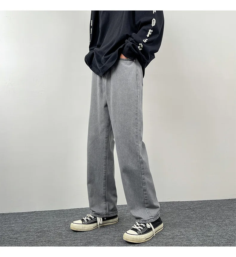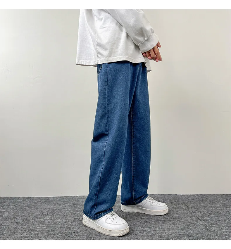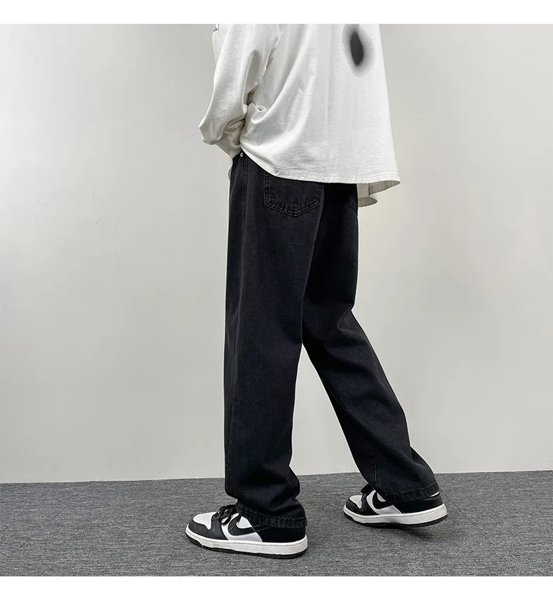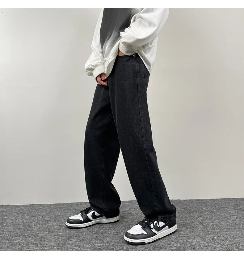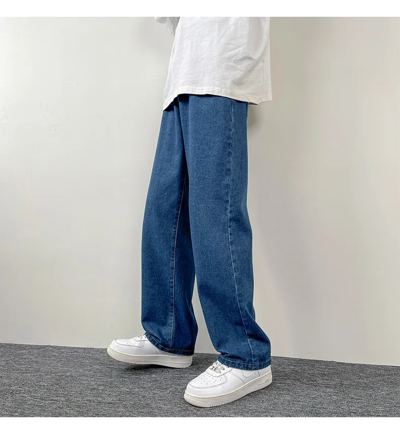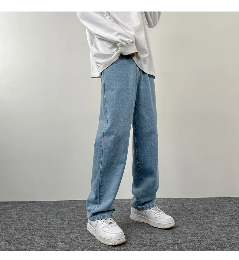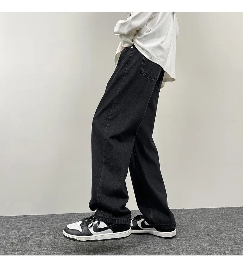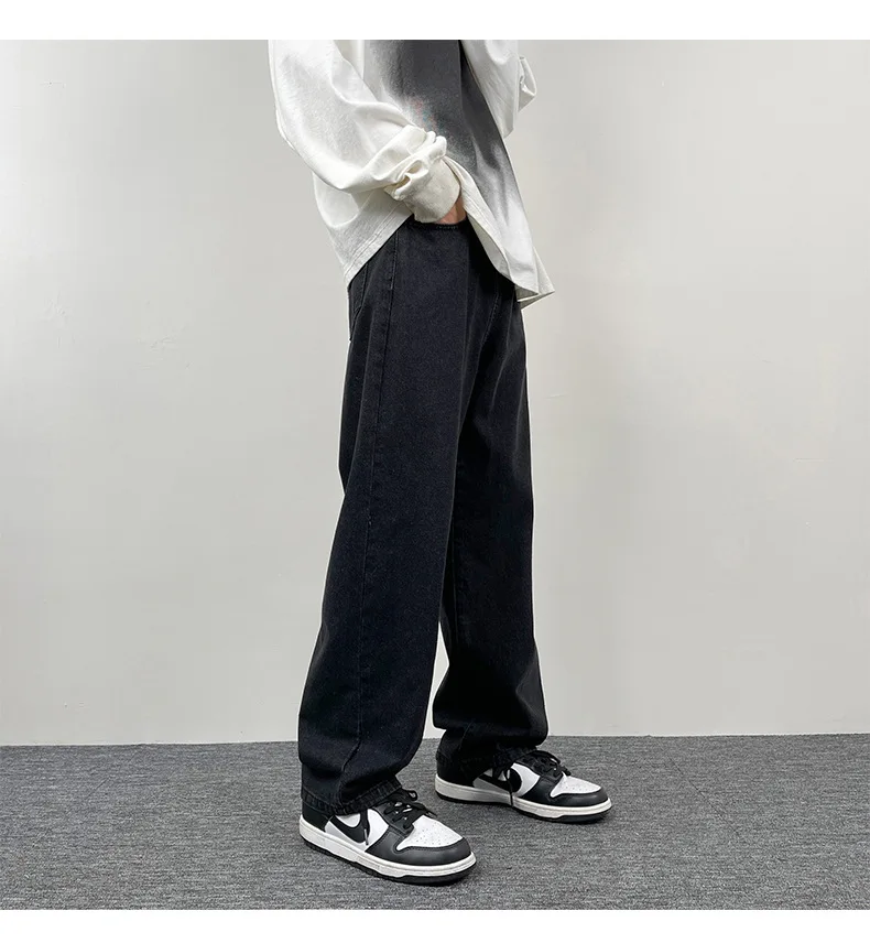 Threebooy New Korean Fashion Men's Casual Baggy Long Jeans Classic Man Straight Denim Wide-leg Pants Solid Color