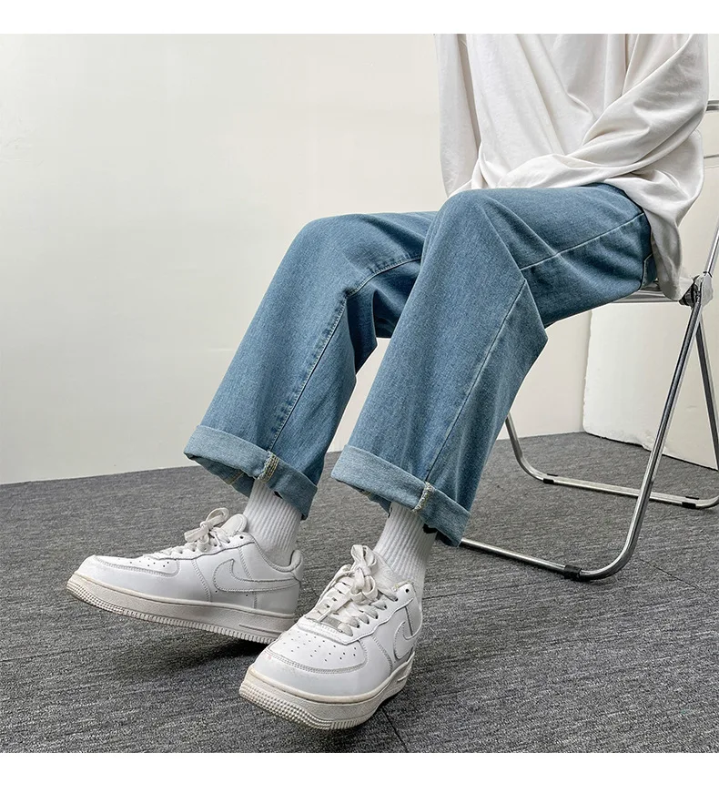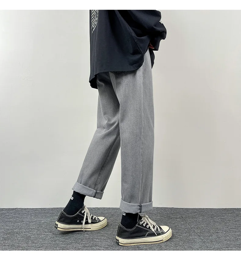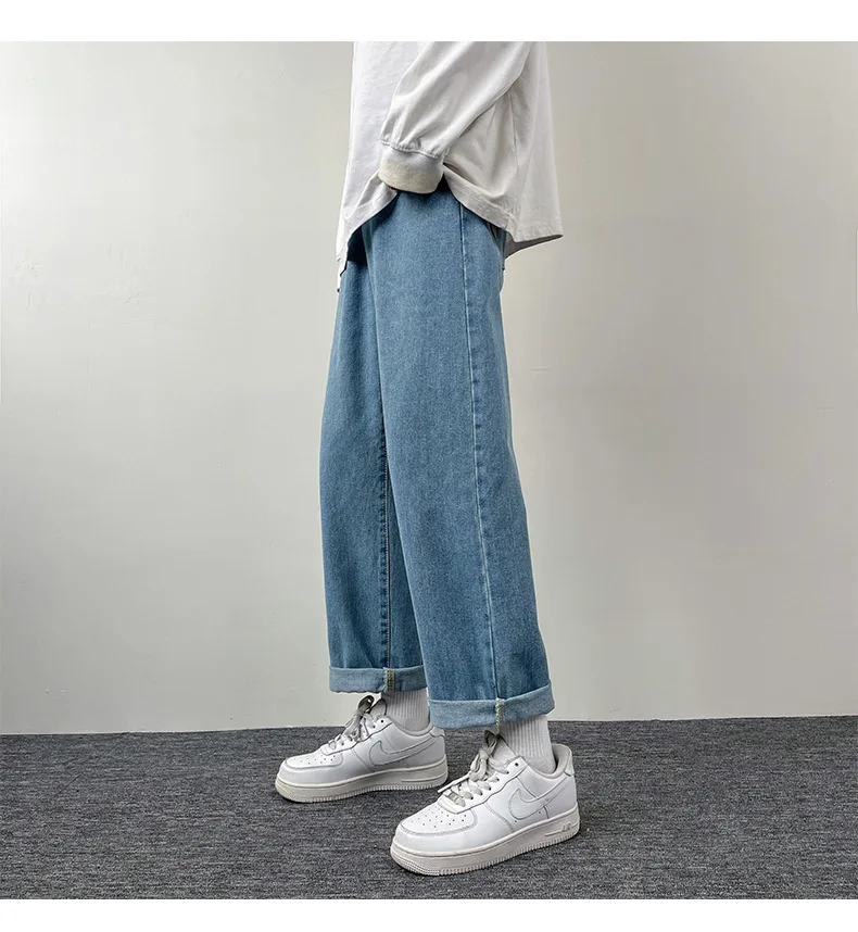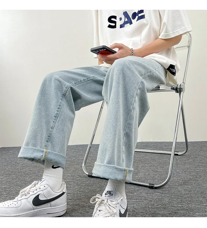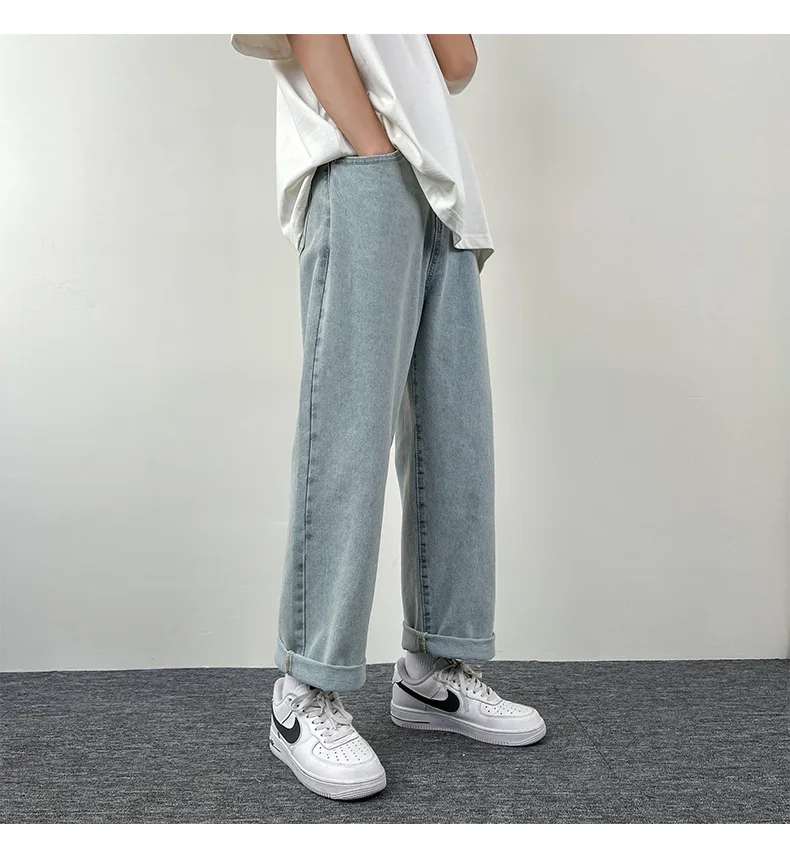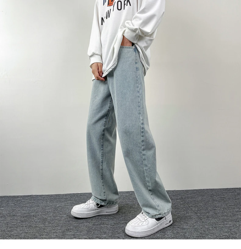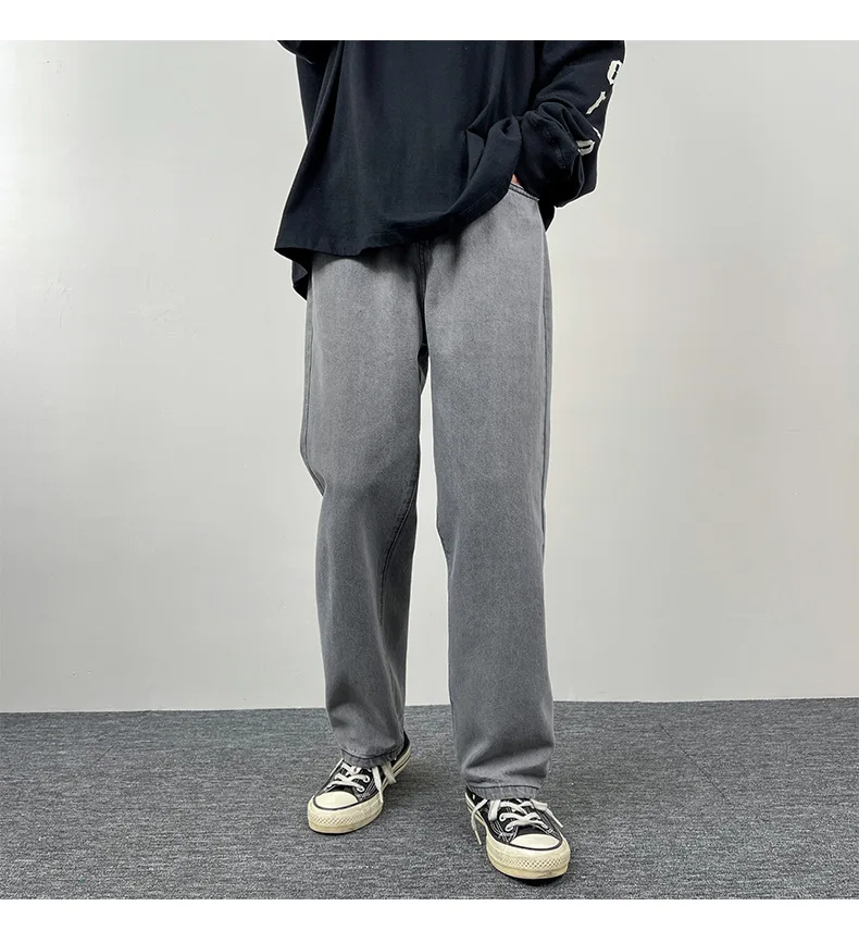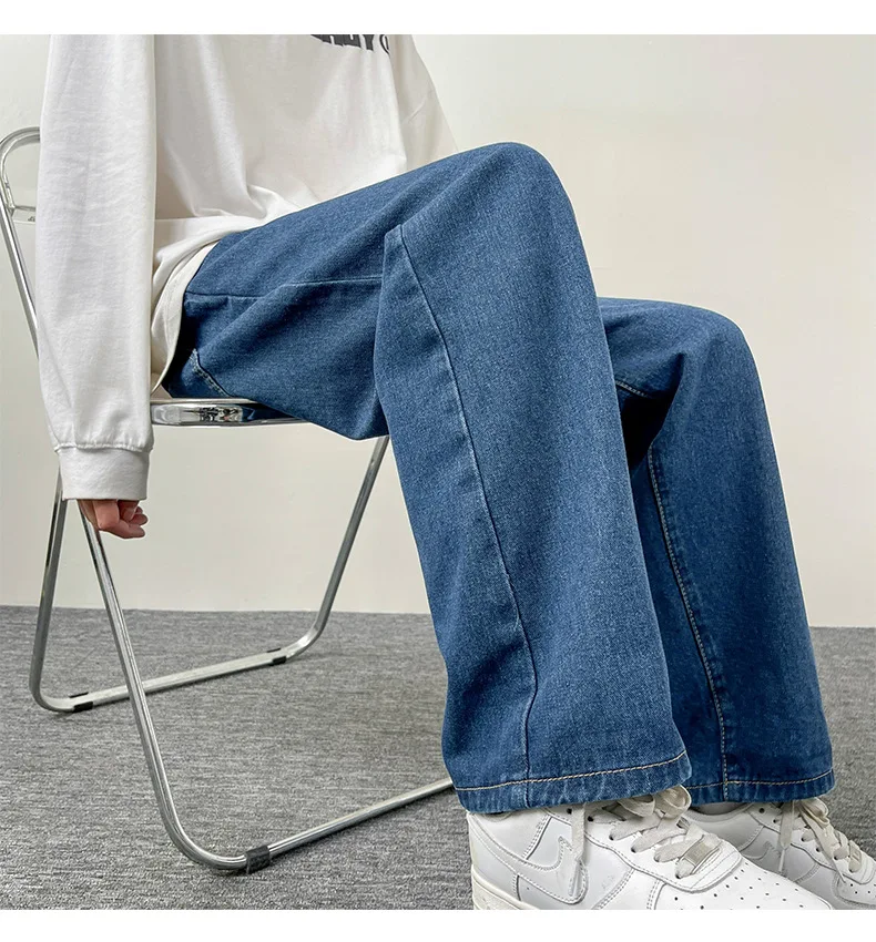 Threebooy New Korean Fashion Men's Casual Baggy Long Jeans Classic Man Straight Denim Wide-leg Pants Solid Color