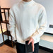 Threebooy New Korean Retro Men Basic Sweaters Luxury Knit Solid Color Mock Neck Long Sleeve Pullover Casual Textured High Quality Knitwear