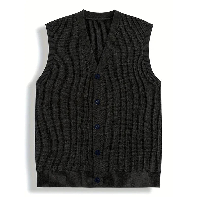 Threebooy New Luxury Casual Men Sweater Vest Leisure Trendy Knit V Neck Button-down Solid Color Sleeveless Cardigan Retro Basic Waistcoats