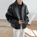 Threebooy New Men's Casual Textured PU Leather Jacket Fashion Zipper Turn-down Collar Long Sleeve Coats High Quality Korean Style Outfits